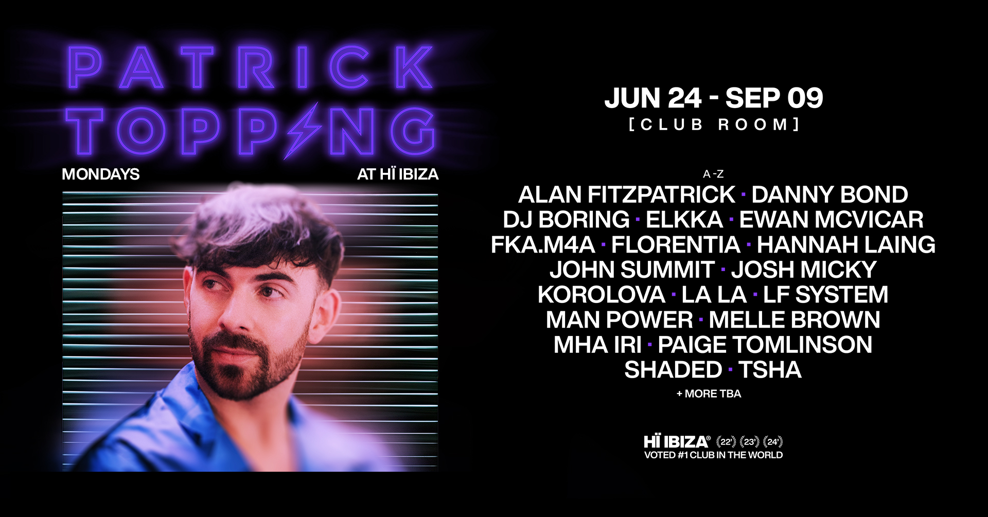 En parallèle, Patrick Topping apportera son énergie haute en couleur et un casting all-star dans le Club Room, avec des performances de :