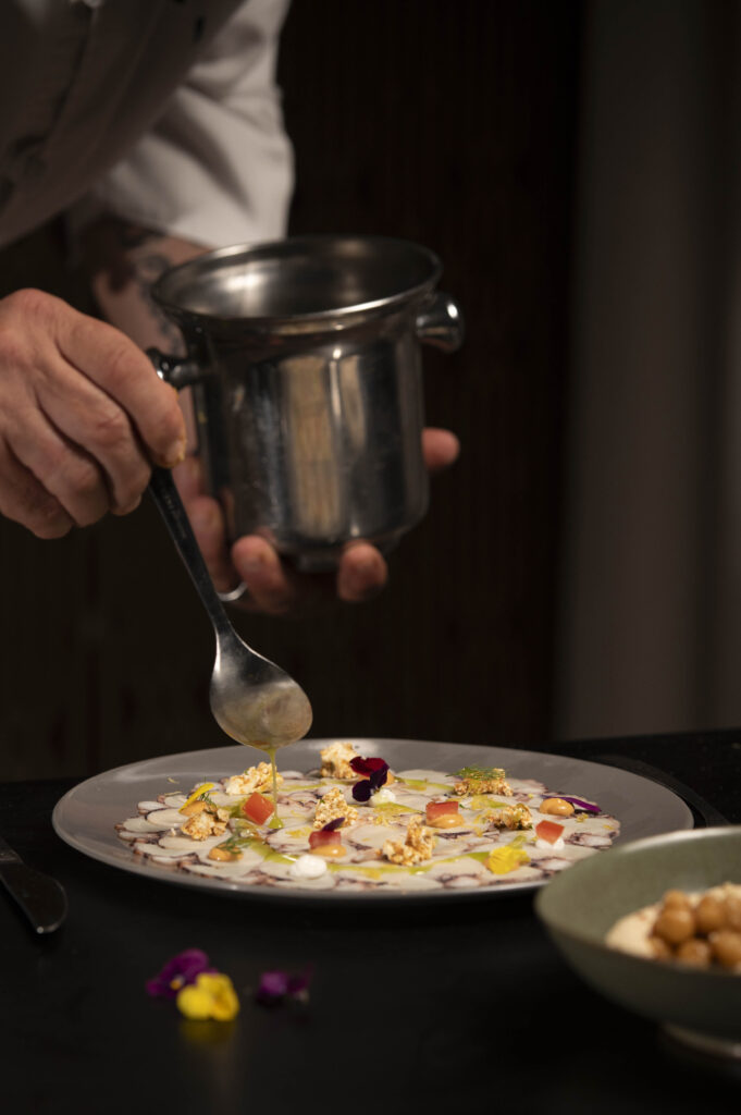 Inspiré de la tradition et des souvenirs d’enfance, « Mazi », qui signifie « ensemble » en grec, fait revivre la tradition culinaire du partage du pays. Les plats reflètent les habitudes gastronomiques non seulement d’une région mais de tout le pays, des îles de la mer Égée au nord de la Grèce et au Péloponnèse.