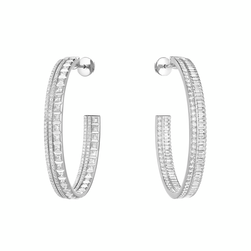 Créoles Quatre Radiant Edition : Naomi Campbell arborait les créoles Quatre Radiant Edition, des chefs-d’œuvre pavés de diamants sur or blanc. Ces boucles d’oreilles sophistiquées, véritables emblèmes de l’artisanat de Boucheron, captivent par leur éclat et leur design raffiné.