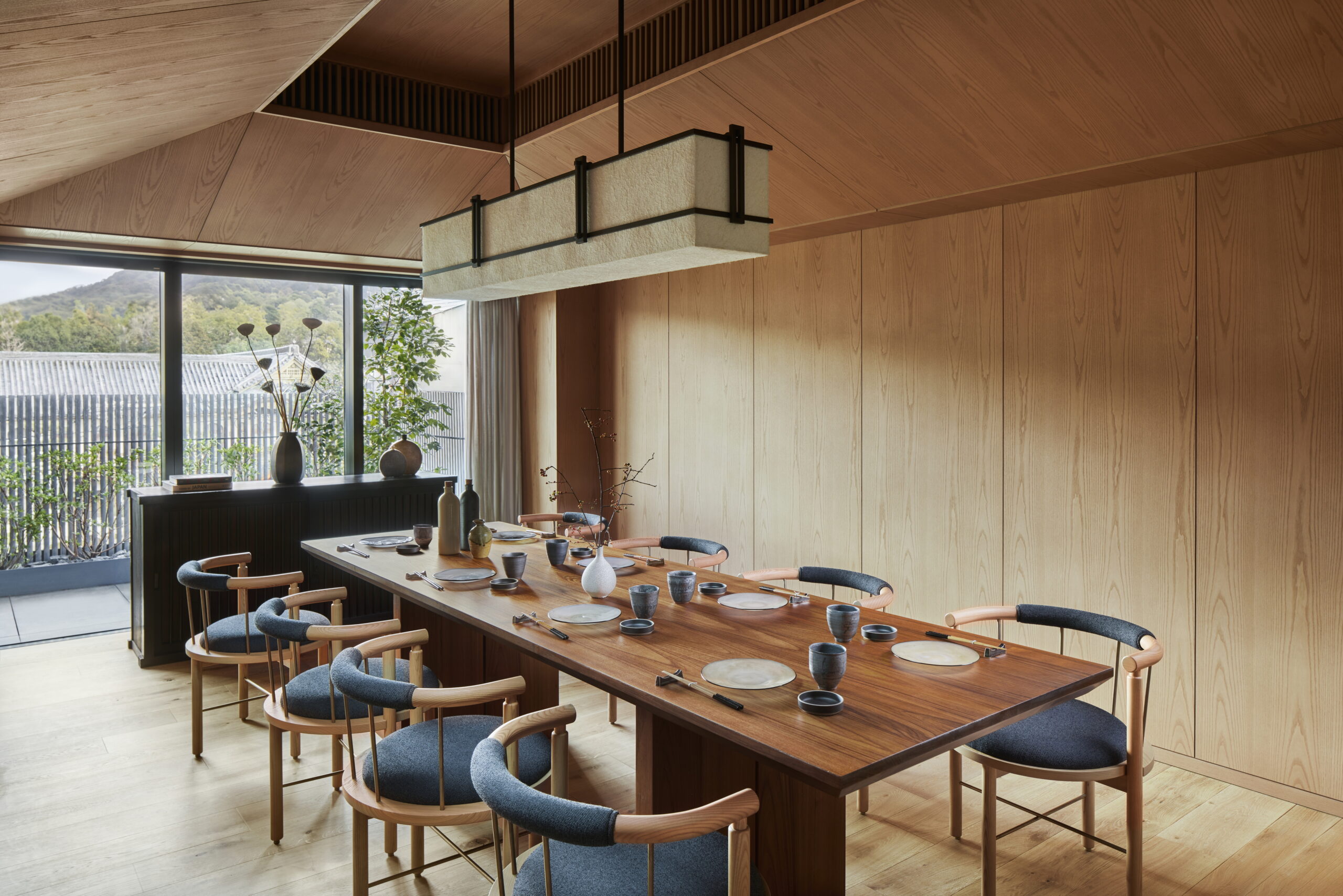 Le design de Six Senses Kyoto puise dans la richesse de la période Heian, une ère de floraison artistique et culturelle. L’hôtel se dresse comme un pont entre le passé glorieux et le présent moderne de Kyoto. L’ambiance est immédiatement palpable dès l’entrée, où un paravent orné de 504 carreaux de Rakuyaki accueille les visiteurs, chacun symbolisant le mont sacré Kurama. Cette première impression est complétée par une interprétation contemporaine des Chōjū-giga, considérés comme les premiers mangas du Japon, fusionnant art traditionnel et modernité.