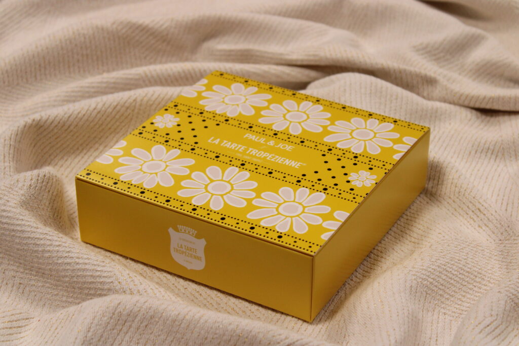 Paul & Joe, célèbre pour ses imprimés joyeux et ses designs rétro-chic, apporte sa touche créative à cette collaboration. Le coffret Paul & Joe x La Tarte Tropézienne arbore un design élégant, mêlant l’esthétique classique de La Tarte Tropézienne à l’empreinte florale emblématique de Paul & Joe. Ce coffret exclusif, décoré de motifs floraux aux couleurs pastel douces, est un véritable objet de collection. Il incarne parfaitement l’esprit de liberté et de gourmandise, séduisant aussi bien les amateurs de pâtisserie que les passionnés de mode.