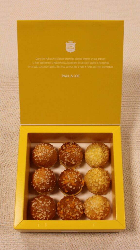 Cette collaboration entre La Tarte Tropézienne et Paul & Joe est bien plus qu’un simple partenariat ; elle représente l’union de deux visions du luxe et du raffinement. Les Baby Trop’ réinventées avec des saveurs d’agrumes méditerranéens et présentées dans un coffret élégant sont le reflet parfait de cette alliance. Chaque élément, des ingrédients soigneusement sélectionnés à la conception artistique du coffret, témoigne de l’engagement des deux maisons à offrir une expérience exceptionnelle.