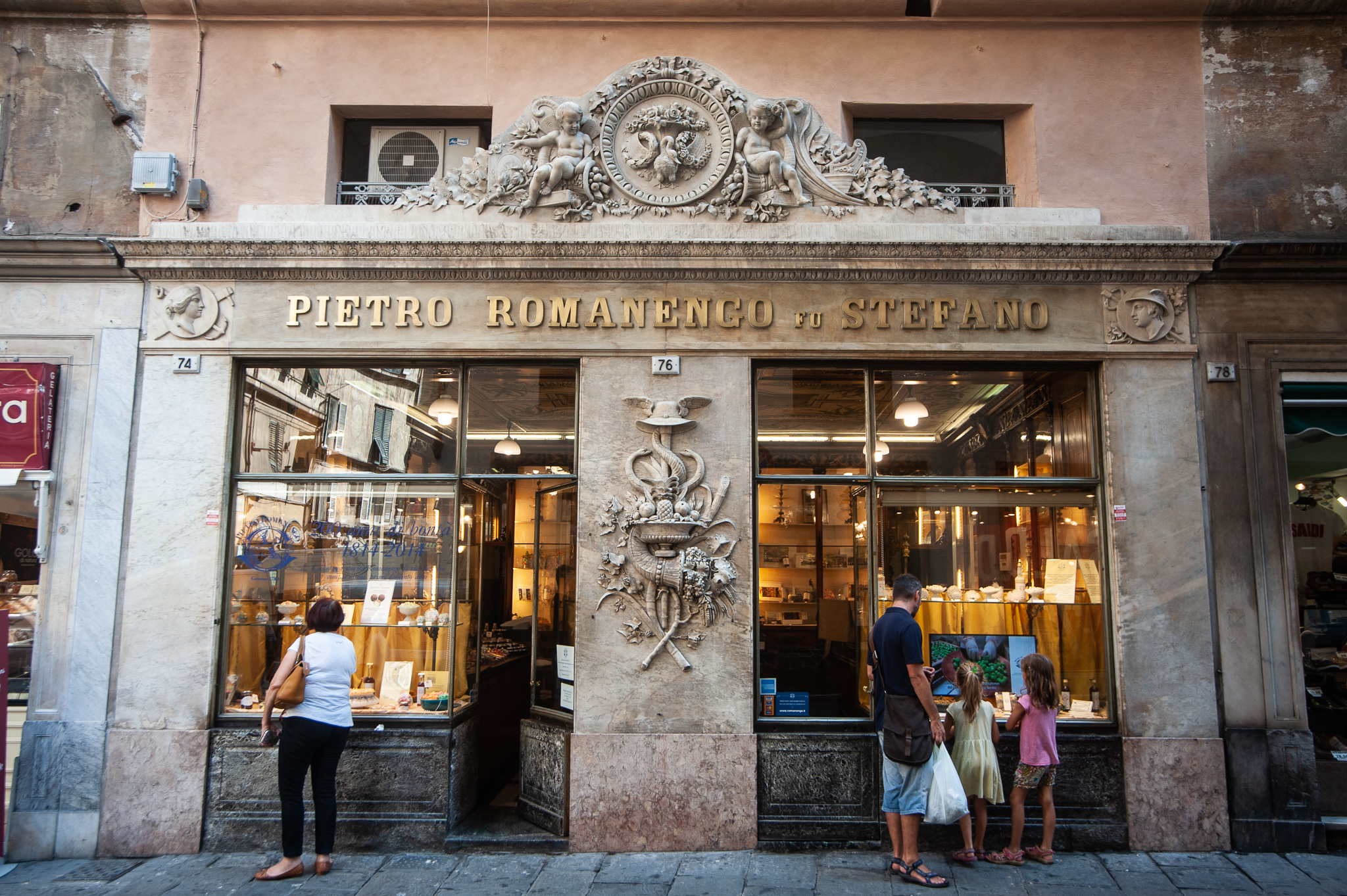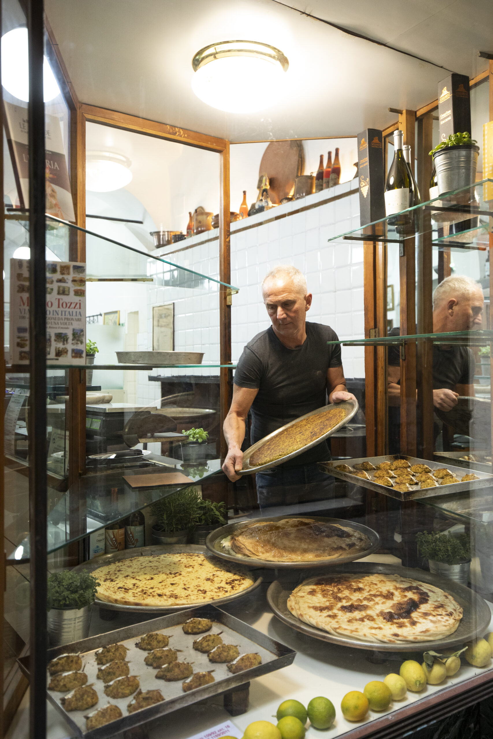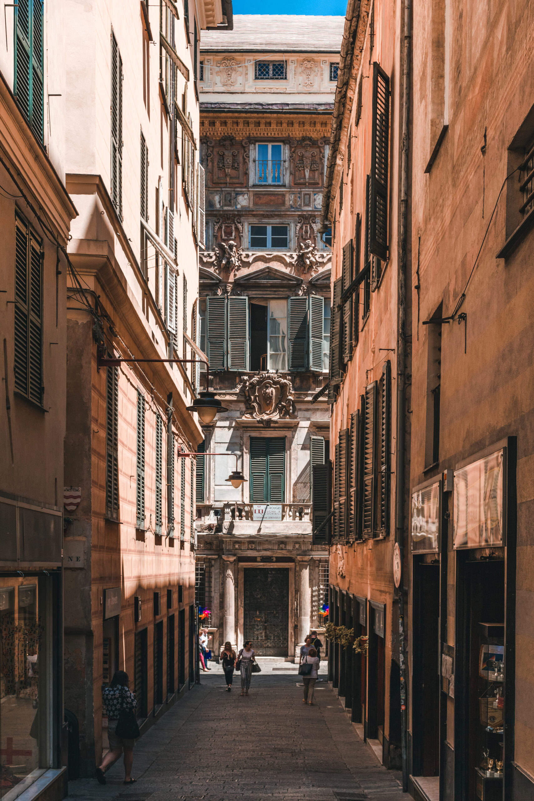 L’initiation aux saveurs génoises commence cependant dans la rue, au détour d’une ruelle pavée. Ici un cone di frutti di mare – pyramide de fruits de mer panés – voisine avec une farinata, cette délicieuse galette à la farine de pois chiches que l’on déguste encore tiède. Plus loin, les devantures des pâtisseries historiques dévoilent leur trésor de douceurs sucrées ou salées.