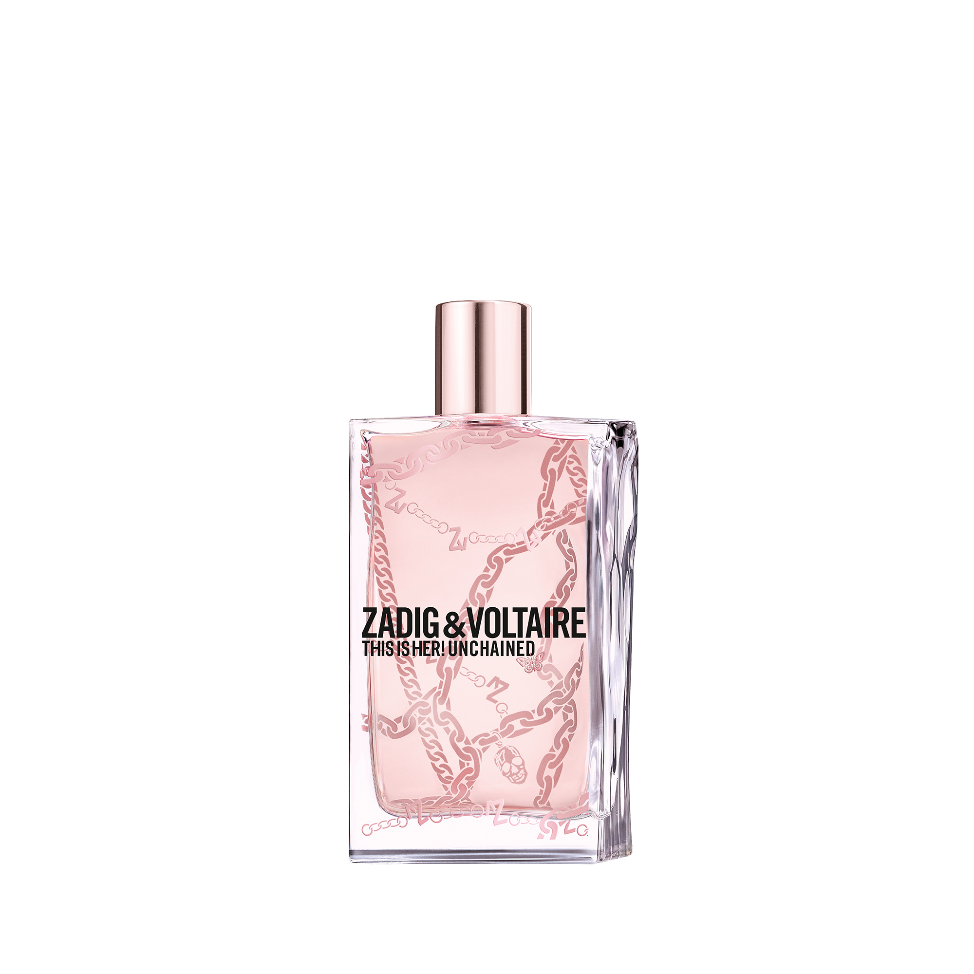 Le design du flacon de THIS IS HER! UNCHAINED reflète l’esthétique iconique de Zadig&Voltaire. La couleur rose poudré du flacon et de l’étui attire immédiatement le regard, symbolisant une femme spontanée et audacieuse. Le flacon présente une tranche brisée signature, avec des charms en suspension qui ajoutent une touche personnelle et expressive.