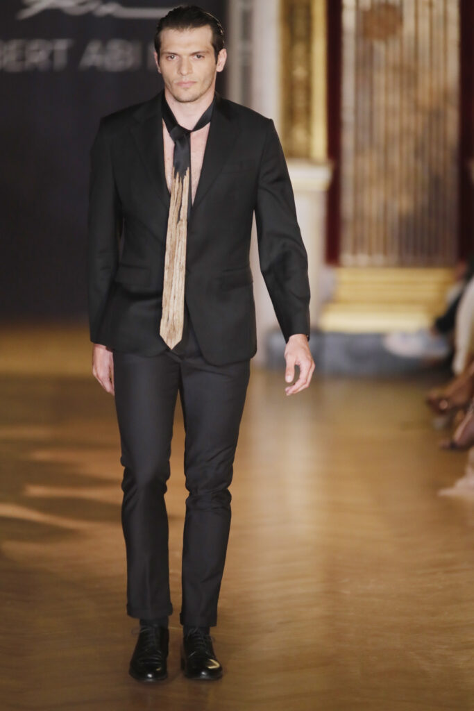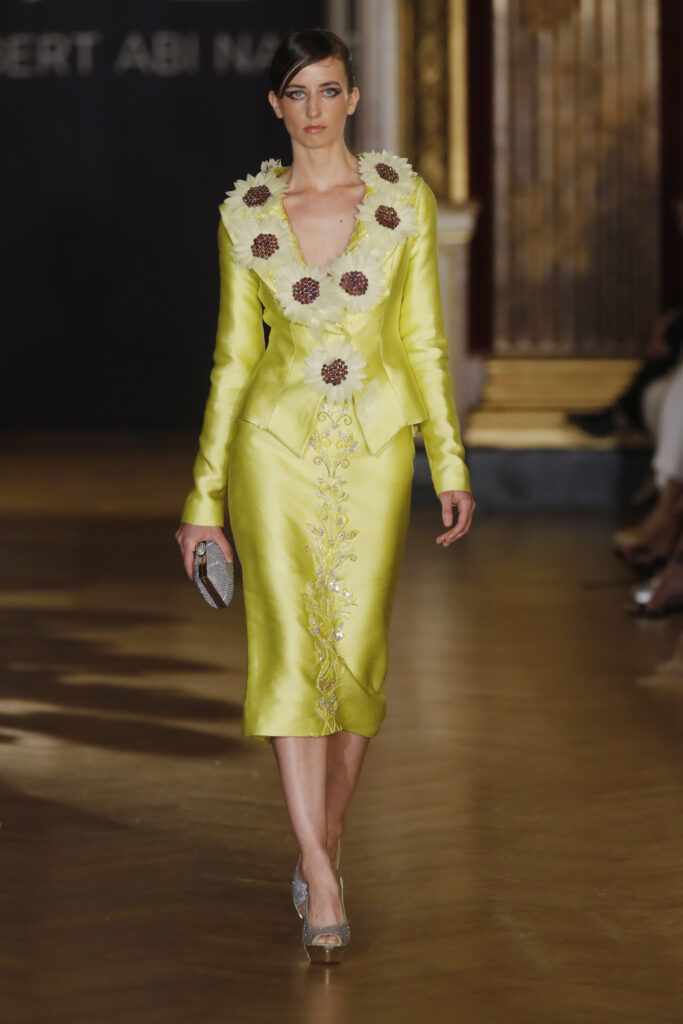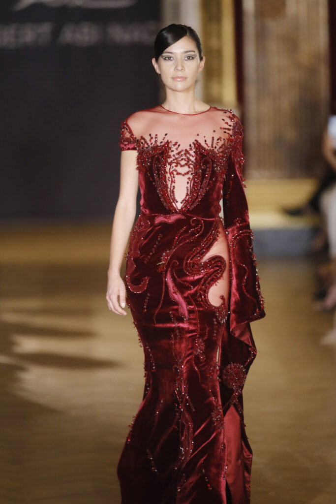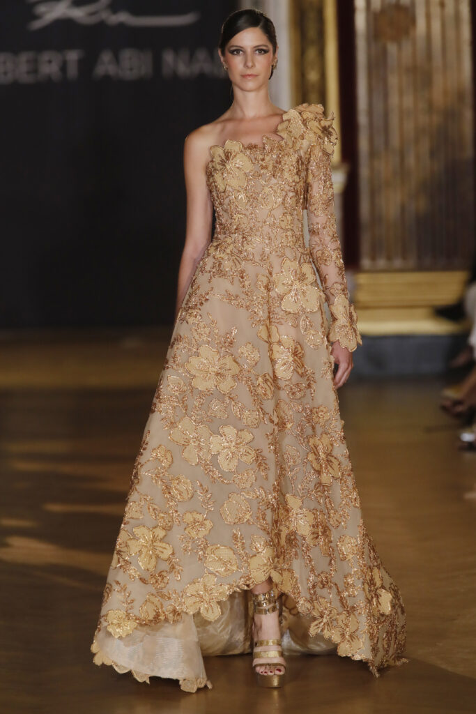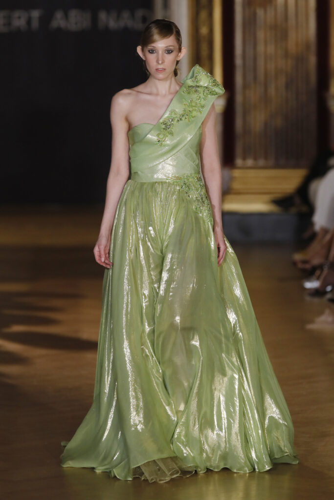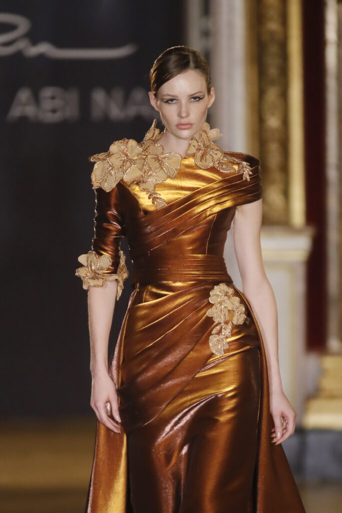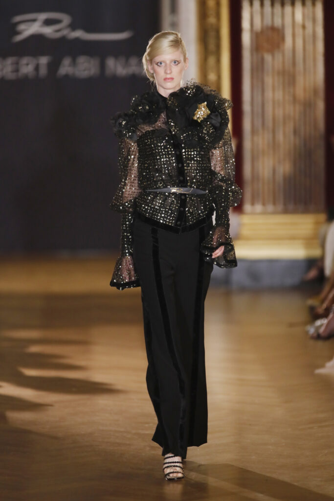 Les créations de Robert Abi Nader sont conçues pour représenter une femme à la fois délicate et forte, séduisante et élégante. Ses modèles ajustés au corps mettent en avant la féminité tout en évitant les coupes amples, préservant ainsi l’identité de chaque silhouette grâce à des tissus à la fois délicats et audacieux.
