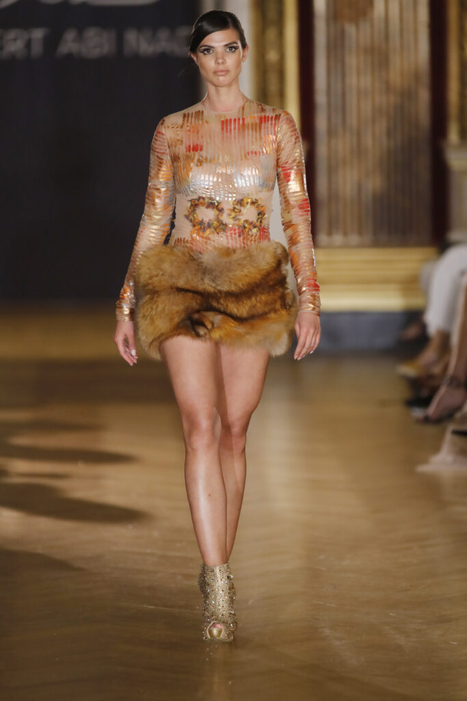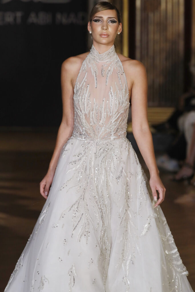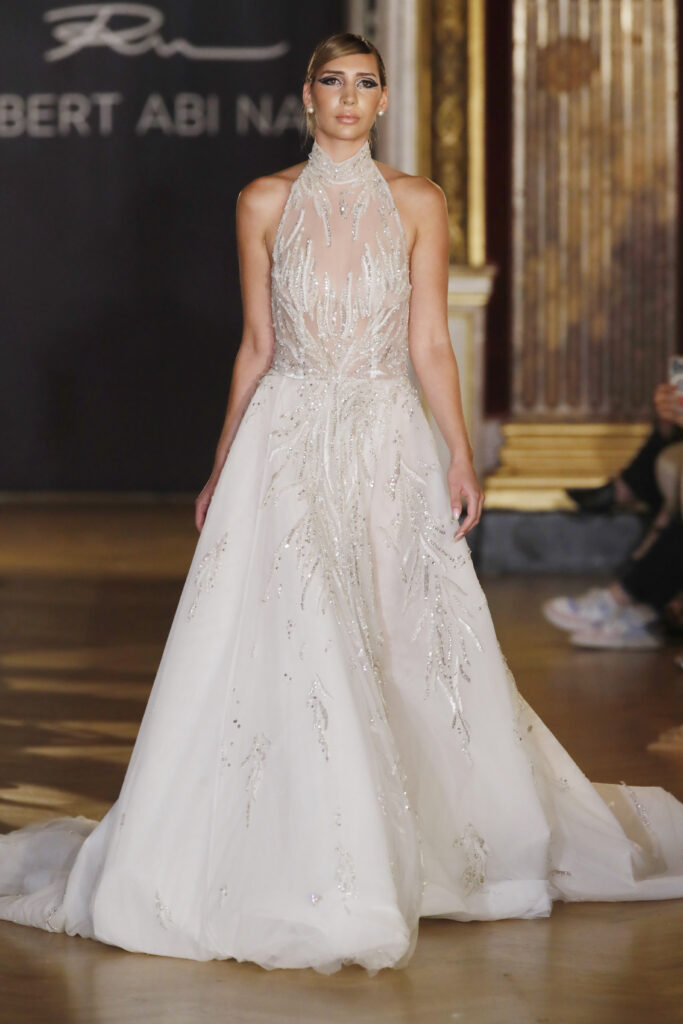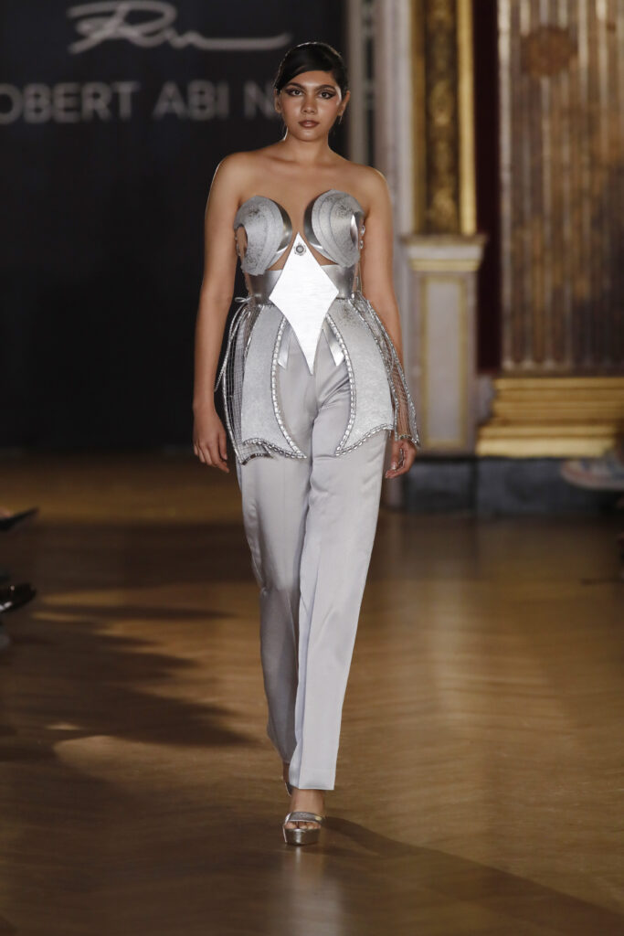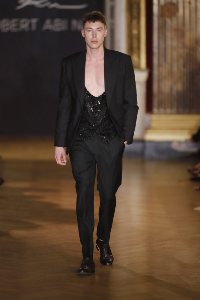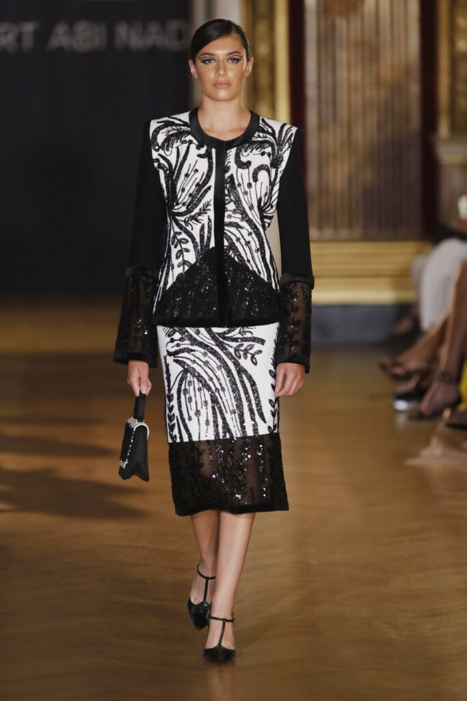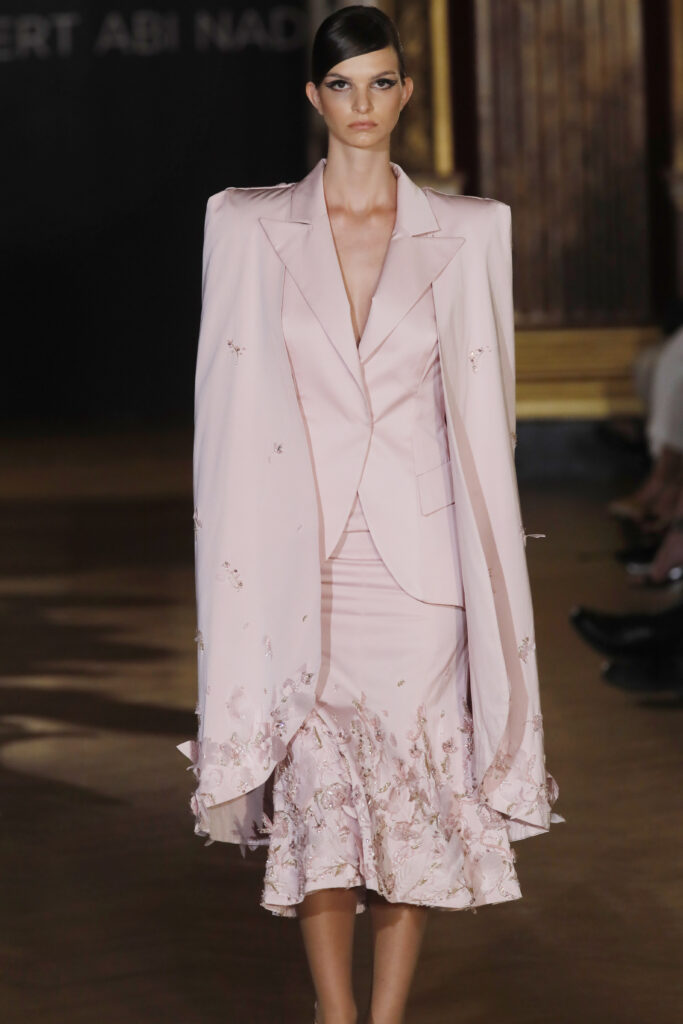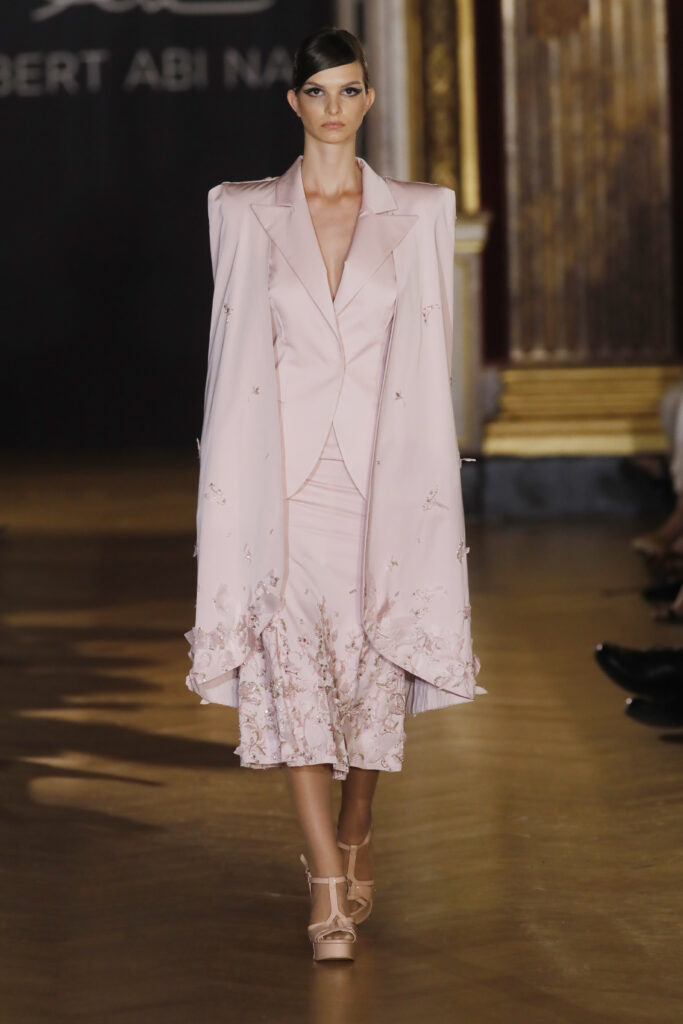 Les créations de Robert Abi Nader sont conçues pour représenter une femme à la fois délicate et forte, séduisante et élégante. Ses modèles ajustés au corps mettent en avant la féminité tout en évitant les coupes amples, préservant ainsi l’identité de chaque silhouette grâce à des tissus à la fois délicats et audacieux.