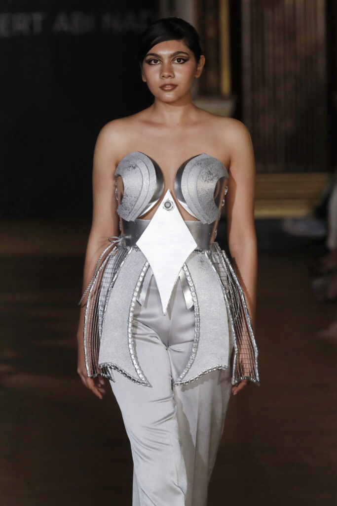 Robert Abi Nader intègre des éléments naturels et un renouvellement constant dans cette collection riche en espoir, traduisant les perceptions impressionnistes en émotions palpables telles que la colère, la sérénité, l’espoir, l’optimisme et la force. La collection comprend 42 pièces (45), allant des robes aux tailleurs, en passant par des combinaisons, des abayas et une robe de mariée enchanteresse.