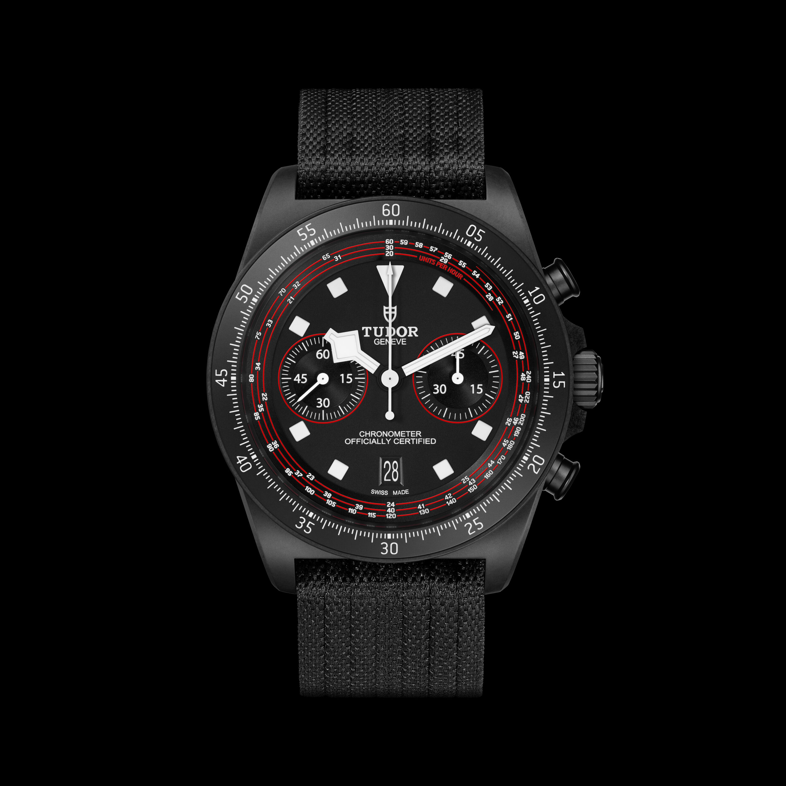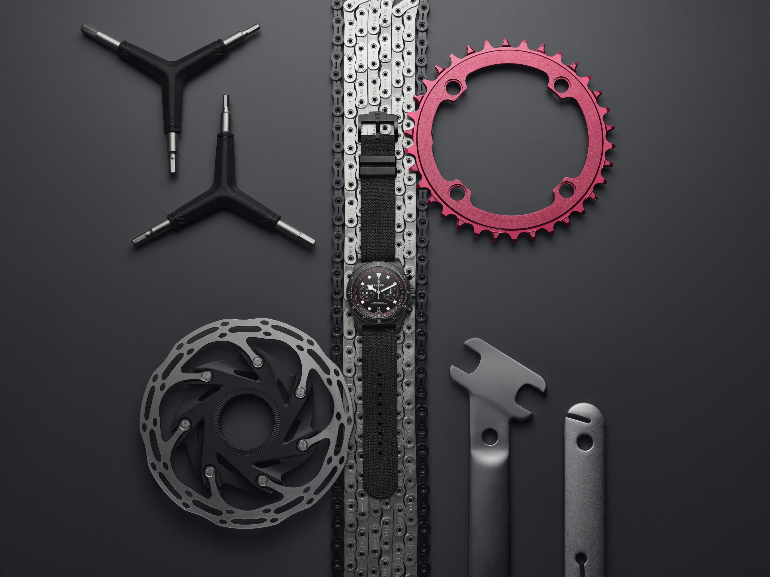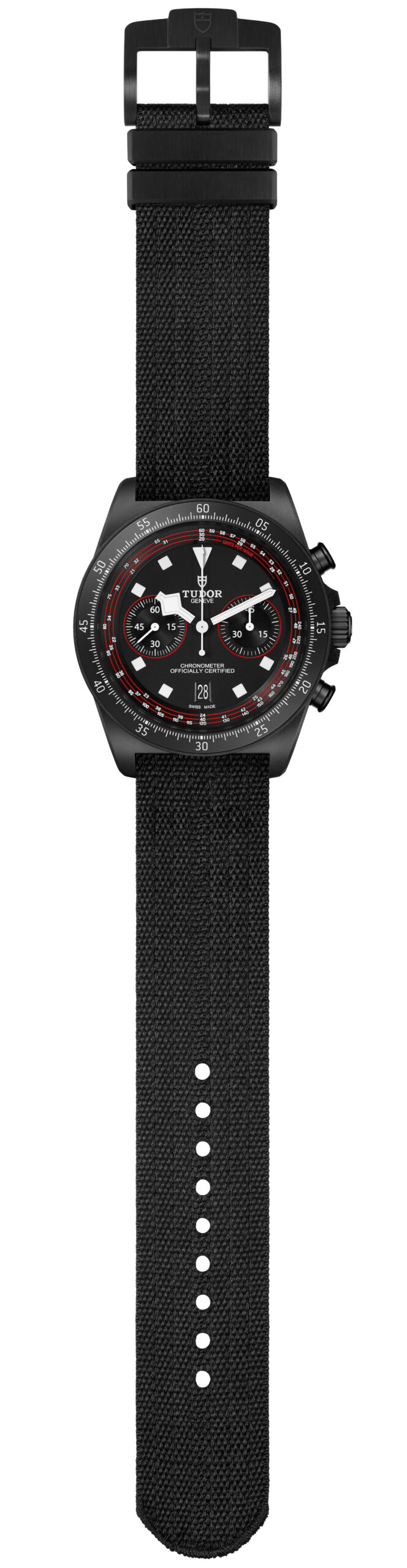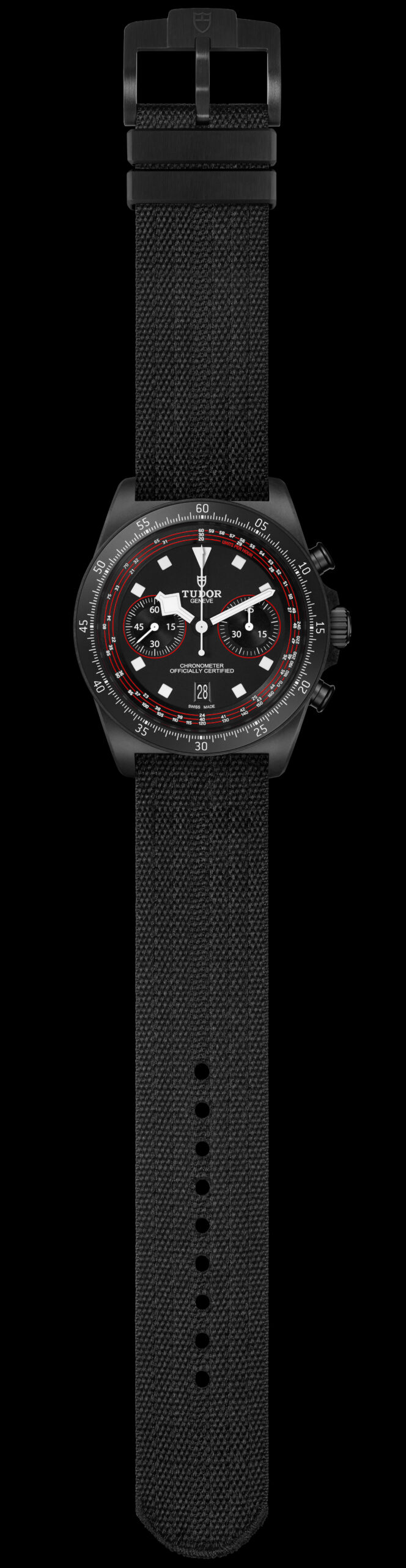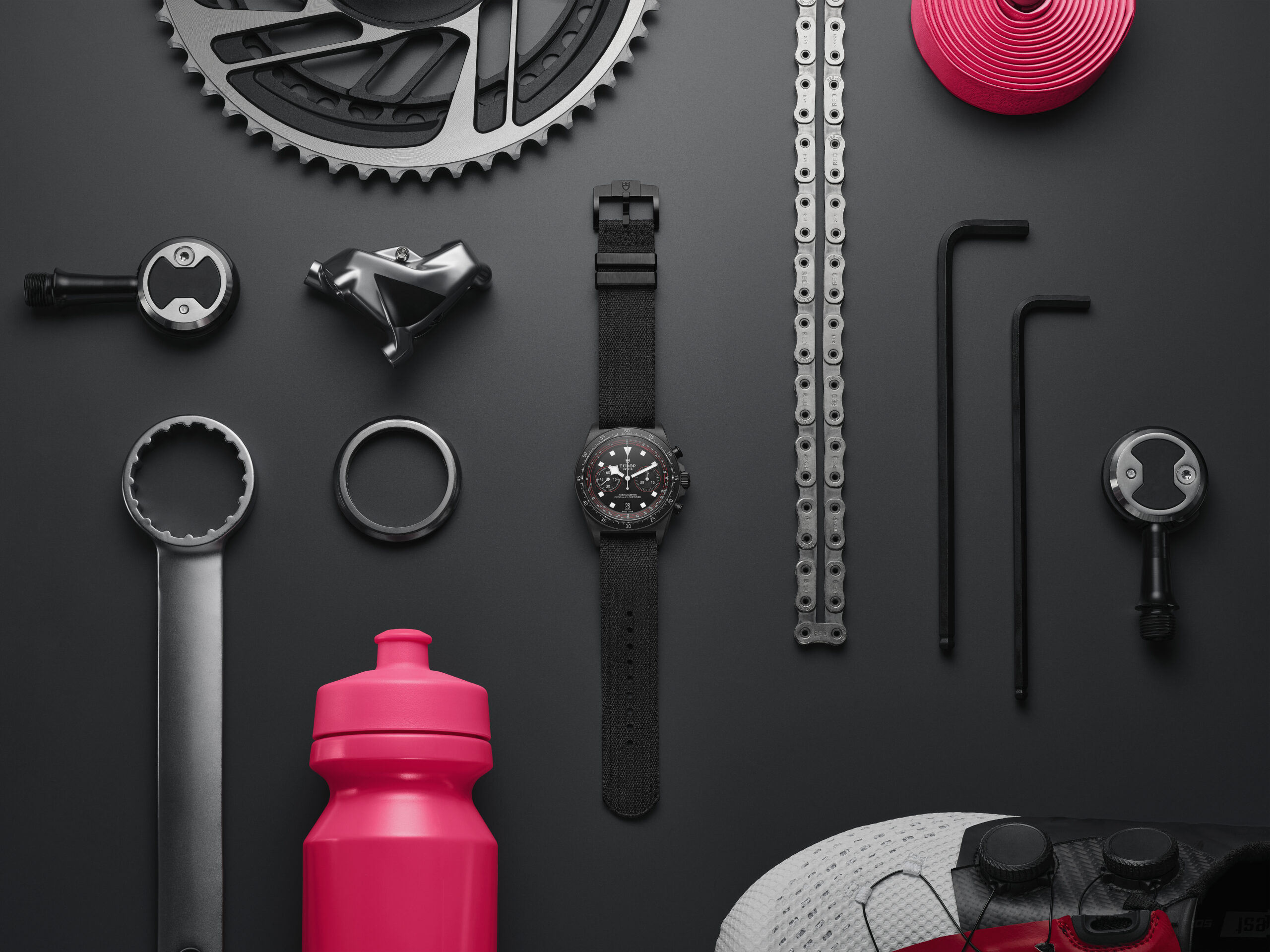 Mais c’est surtout au niveau du cadran que la « Cycling Edition » dévoile ses atouts racing par excellence avec son échelle tachymétrique recalibrée spécifiquement pour le vélo. Graduée en spirale sur trois tours, elle permet de déterminer facilement les vitesses moyennes jusqu’à 20 km/h. Un gage de lisibilité optimale, complété par les index luminescents monoblocs, les fameuses aiguilles « Snowflake » et les touches de rouge vif du team Tudor.
