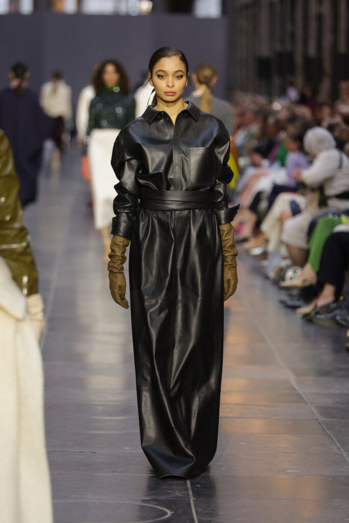 Les créations de cette saison sont une fusion de richesses matérielles et de techniques innovantes. Des tissus « coatés » pour la brillance, des laines vaporeuses pour l’hiver, et des étoffes précieuses comme l’organza, le satin et le néoprène. Une robe-chemise en organza, un pantalon fuchsia en laine et soie, des gants longs aubergine semi-brillants, et une robe du soir en mohair sont quelques exemples des pièces iconiques dévoilées.