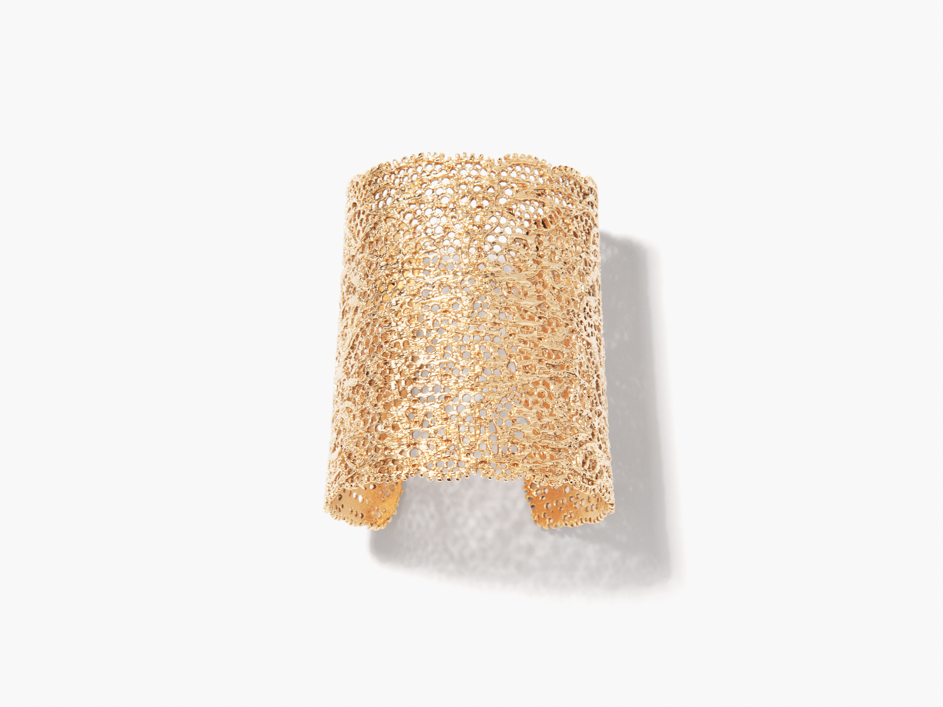 La collection LACE s’inspire de la dentelle traditionnelle souvent portée sous les robes de mariage. Ces bijoux jouent avec les lignes et la transparence pour créer une dentelle dorée qui reflète avec subtilité la beauté et la finesse féminine.