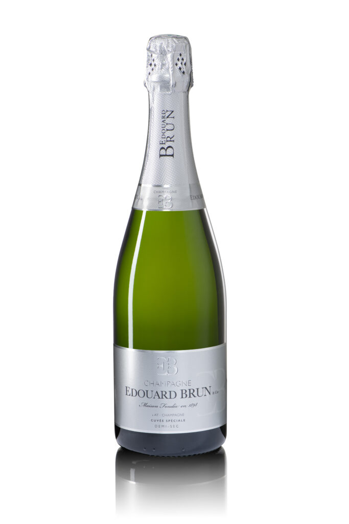 La Cuvée Spéciale Demi-Sec, avec un dosage de 35g/l, séduit par son nez brioché et viennois, où le juteux des fruits jaunes se mêle à des notes florales envoûtantes. En bouche, cette cuvée dévoile un univers aérien et tendre, équilibré par une fraîcheur salivante qui persiste jusqu’à la finale. Parfaite pour accompagner chaque instant, la Cuvée Spéciale Demi-Sec se déguste aussi bien « en piscine » avec des glaçons pour une fraîcheur rafraîchissante, qu’à table pour magnifier des mets estivaux, des fromages bleus ou des gambas à la thaïlandaise. Cette cuvée est également remarquable pour son aptitude à calmer les plats épicés et équilibrer les mets trop salés. Proposée au même prix accessible de 28€, elle incarne l’esprit festif et gourmet de la maison Edouard Brun.