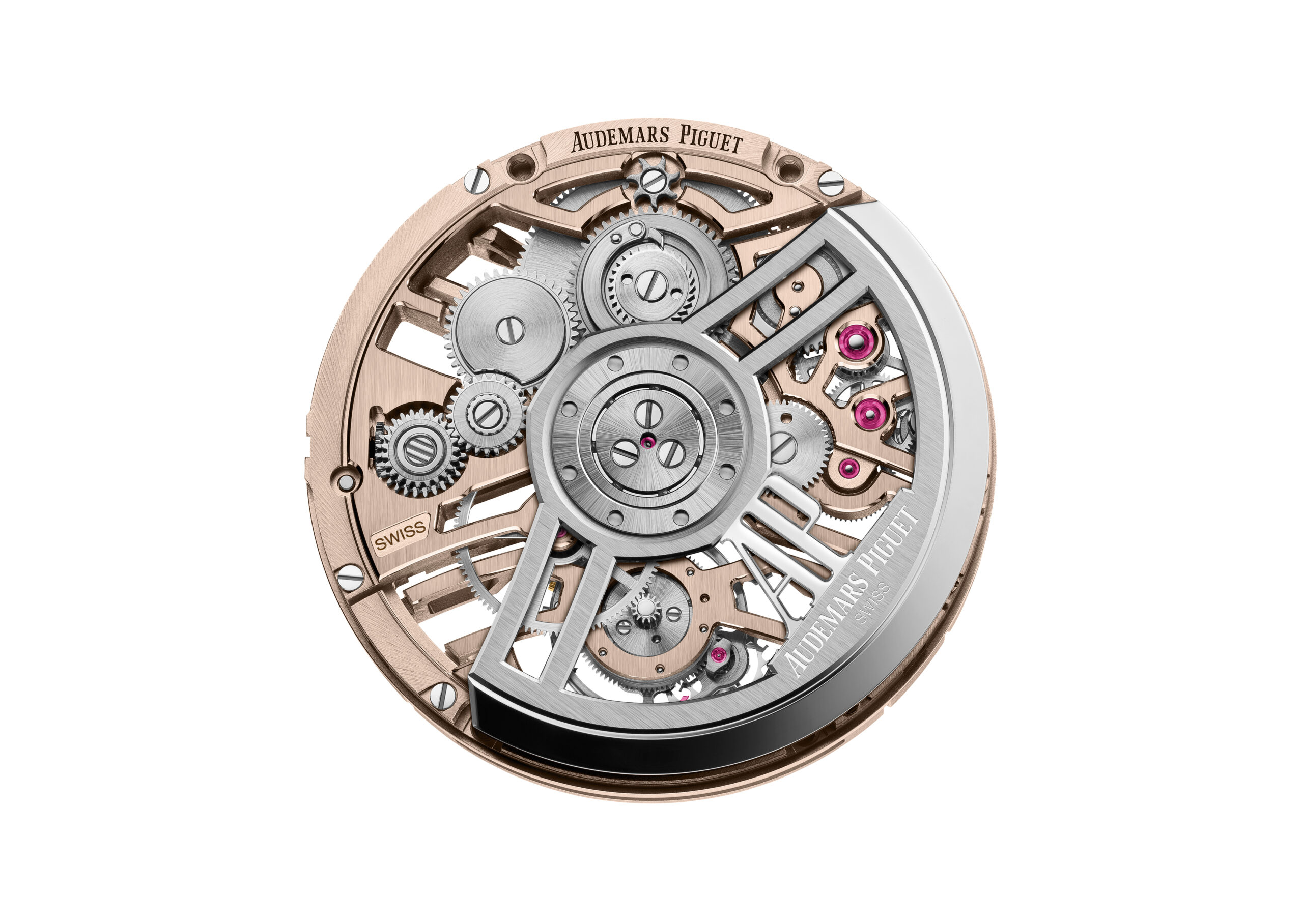 Le design de ce nouveau modèle Royal Oak met en évidence le savoir-faire exceptionnel d’Audemars Piguet, combinant des surfaces polies et satinées qui accentuent les jeux de lumière. La boîte et le bracelet en sand gold sont complétés par des ponts et une platine squelettés dans le même ton, obtenus par un traitement galvanique, créant un effet de profondeur et un contraste subtil avec les composants rhodiés du mouvement.