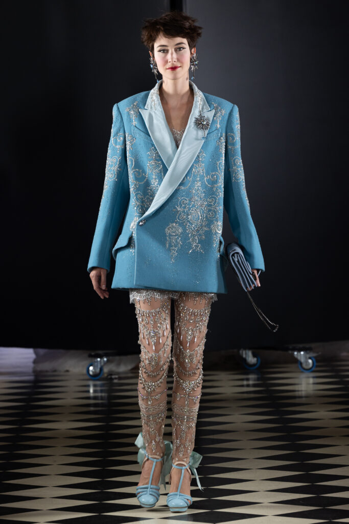 Marie-Antoinette, souvent controversée pour son rôle historique, est ici célébrée pour son influence indéniable sur la mode et la haute couture. Selon Julien Fournié, elle incarne le principe de préférer l’innovation à la tradition, posant ainsi les bases de la mode moderne. Cette collection vise à capturer l’essence du faste de sa vie à Versailles tout en soulignant son statut de première influenceuse de la mode.