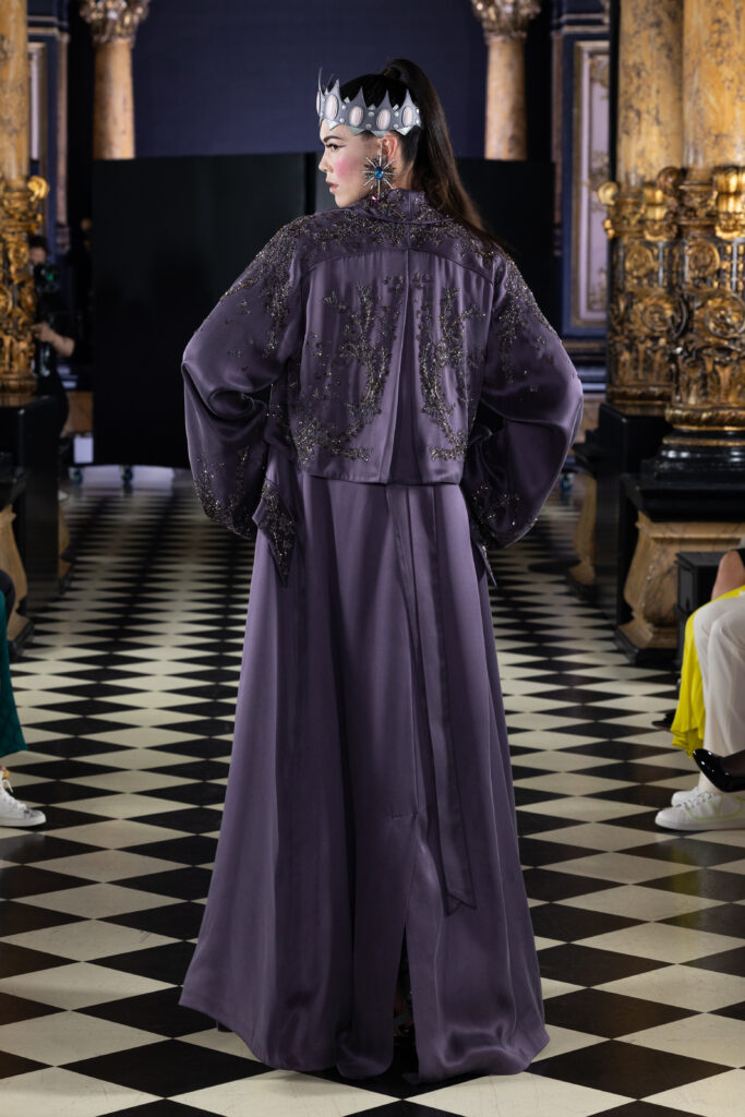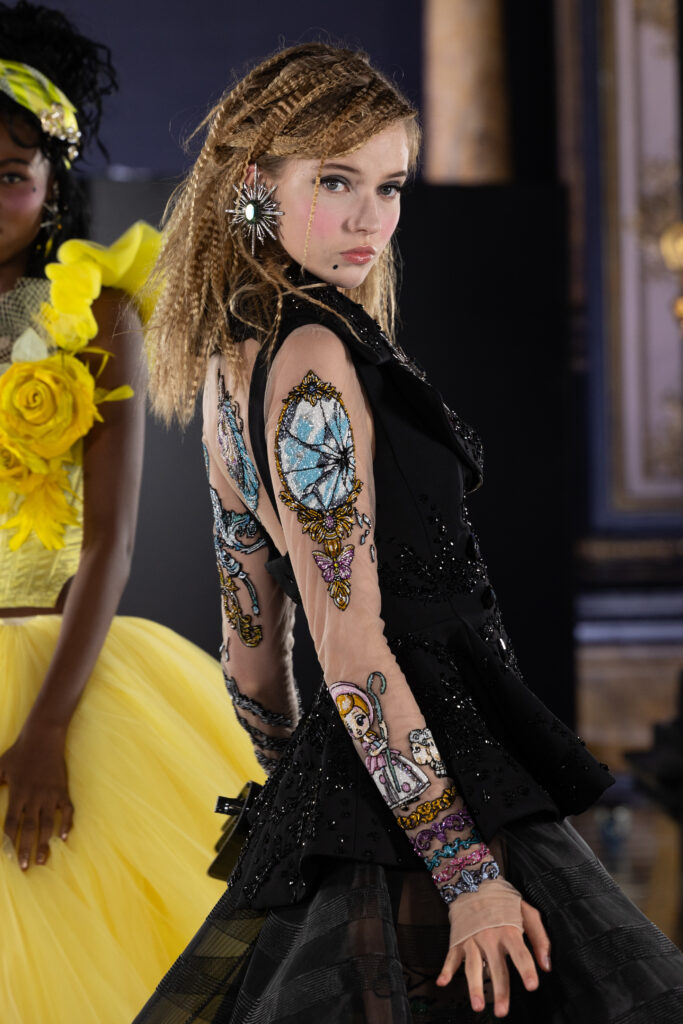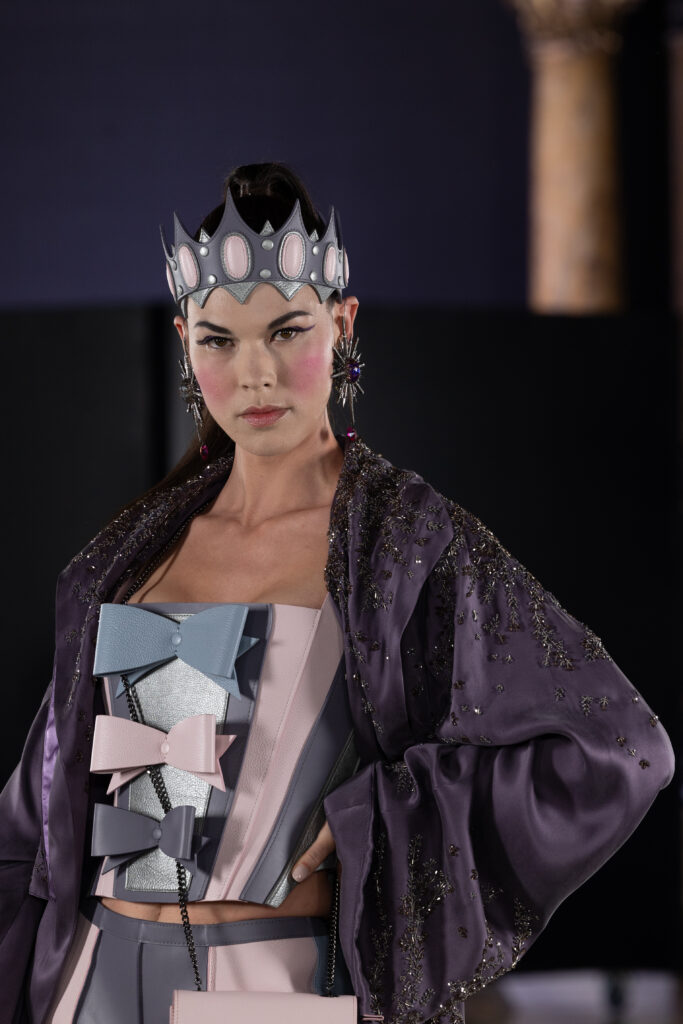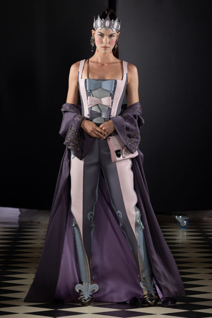 La collection « Last Queen » se compose de six looks époustouflants qui réinterprètent les codes stylistiques de Marie-Antoinette avec une touche contemporaine. Les corsets, les robes de bal volumineuses et les éléments masculins-féminins se côtoient pour offrir une vision moderne et audacieuse de la haute couture. Chaque pièce est réalisée par les meilleurs artisans d’art, mettant en avant un savoir-faire exceptionnel.