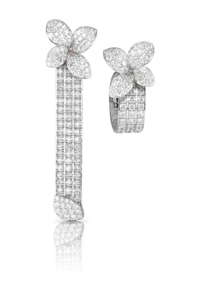 Les bijoux Pasquale Bruni sont couronnés de pierres précieuses soigneusement sélectionnées, serties dans des montures en or blanc 18 carats. Chaque création est une œuvre d’art, fabriquée à la main en Italie avec des techniques artisanales, garantissant l’unicité de chaque pièce. Les diamants utilisés répondent aux critères stricts de couleur F-G et de pureté VVS-VS, et sont certifiés selon le processus de Kimberley, interdisant l’utilisation de diamants provenant de zones de guerre.