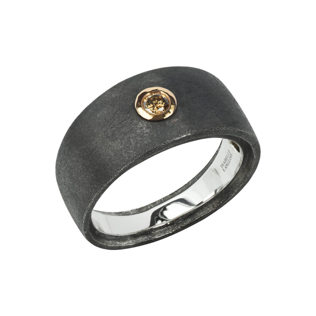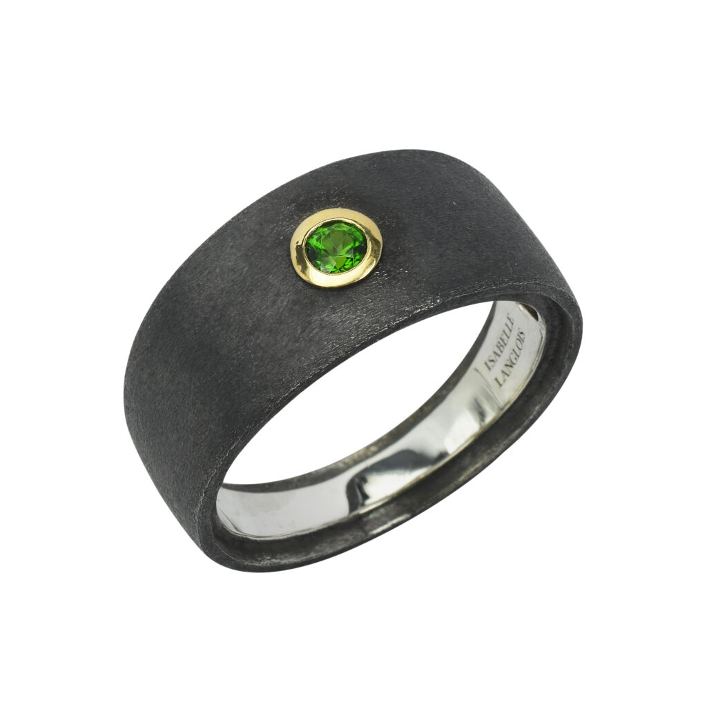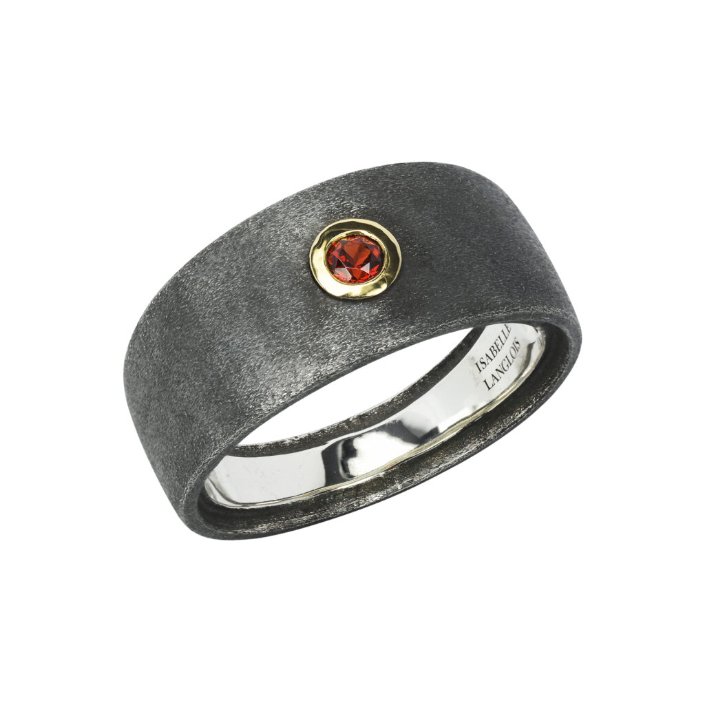 La bague en argent noirci avec grenat serti or blanc, affichée à 1 080 euros, est une autre pièce remarquable de cette collection, alliant robustesse et raffinement. Chaque création porte la signature distinctive d’Isabelle Langlois, une créatrice qui, depuis ses débuts, a su rendre hommage aux pierres de couleur, sublimant leur éclat et leur beauté naturelle.