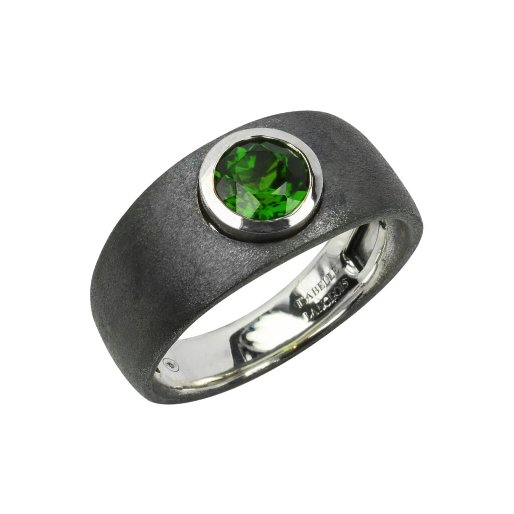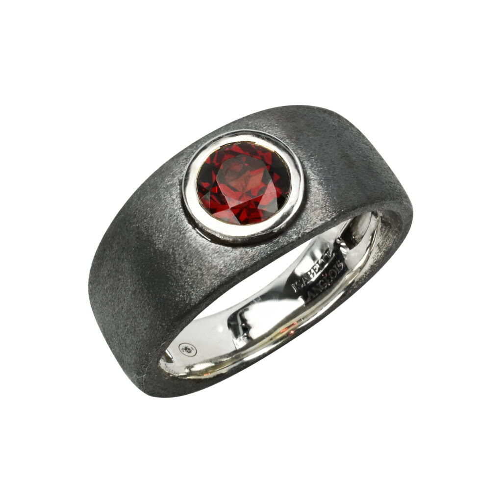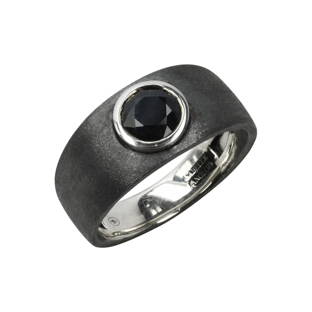 La bague en argent noirci avec grenat serti or blanc, affichée à 1 080 euros, est une autre pièce remarquable de cette collection, alliant robustesse et raffinement. Chaque création porte la signature distinctive d’Isabelle Langlois, une créatrice qui, depuis ses débuts, a su rendre hommage aux pierres de couleur, sublimant leur éclat et leur beauté naturelle.