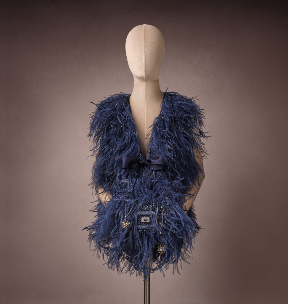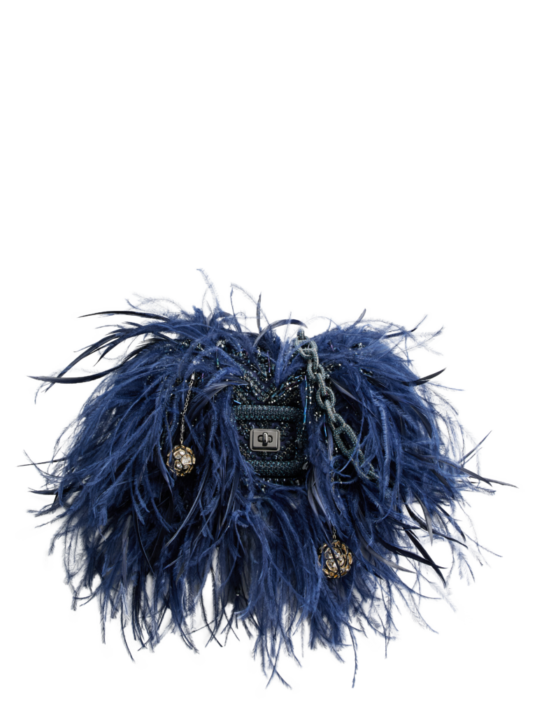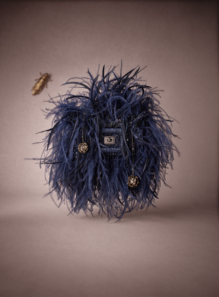 - LUCIOLE : Inspiré par la luciole, ce sac utilise des franges de plumes et de perles pour évoquer une nuit étoilée.
