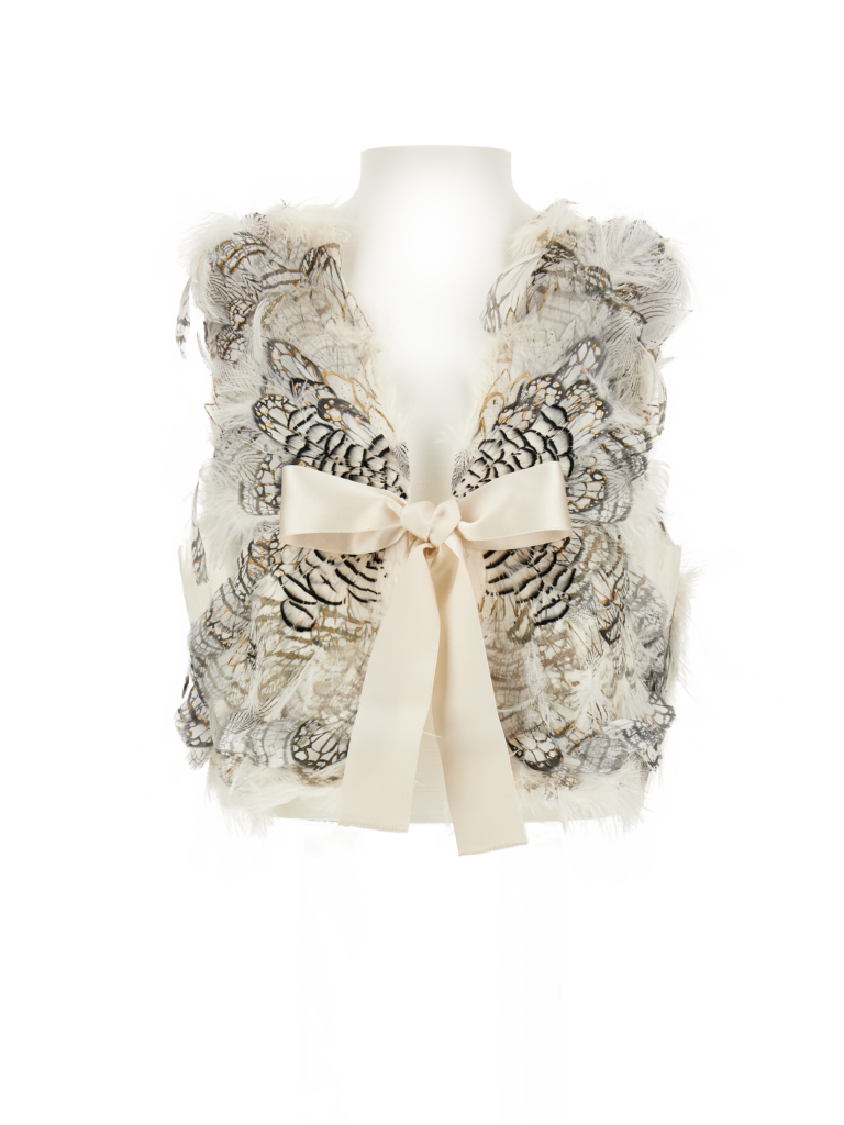 « Petites Merveilles » oscille entre humour lyrique et élégance ténébreuse, chaque pièce tissant une symbiose artistique entre la couture et la nature. Les créations de la collection capturent la beauté et la complexité du monde entomologique, tout en célébrant l’artisanat humain. Les sacs et gilets incarnent des expressions artistiques allant des monochromes nocturnes aux explosions de couleurs diurnes, chaque pièce unique honorant les petits êtres merveilleux du monde naturel.