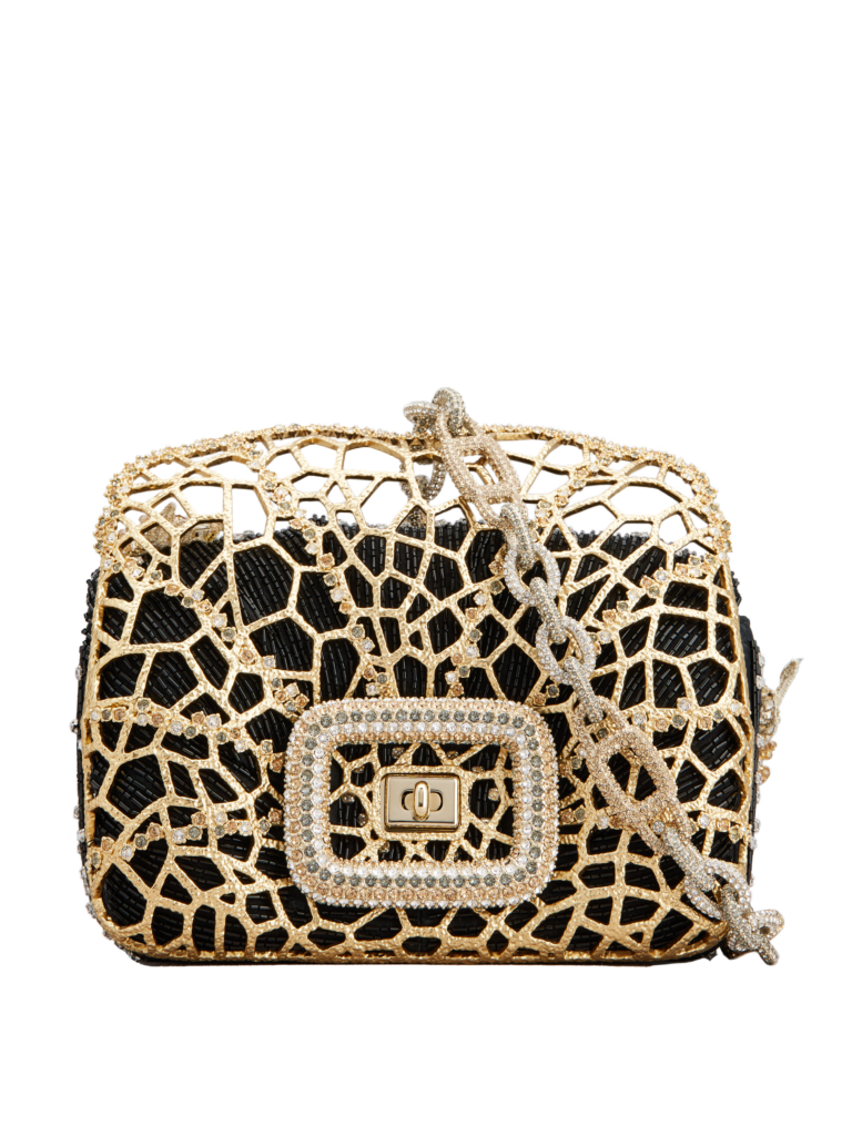 - ROYAL BEE : Inspiré par l’abeille, ce sac combine des perles et des strass pour recréer la matrice d’une ruche dorée.