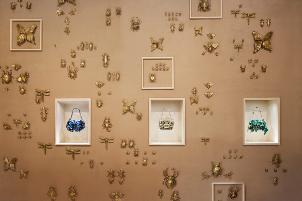 Inspirée par la passion commune de Monsieur Vivier et de Gherardo Felloni pour le monde naturel, la collection « Petites Merveilles » marie la beauté éthérée des insectes à l’artisanat couture. Chaque pièce rend majestueusement hommage aux petites créatures du monde entomologique. Les sacs à main Viv’ Choc et les gilets en soie de la collection incarnent des papillons, abeilles, scorpions, araignées, scarabées, coccinelles et lucioles, sublimés par des couleurs riches, des textures chatoyantes et des formes figuratives.