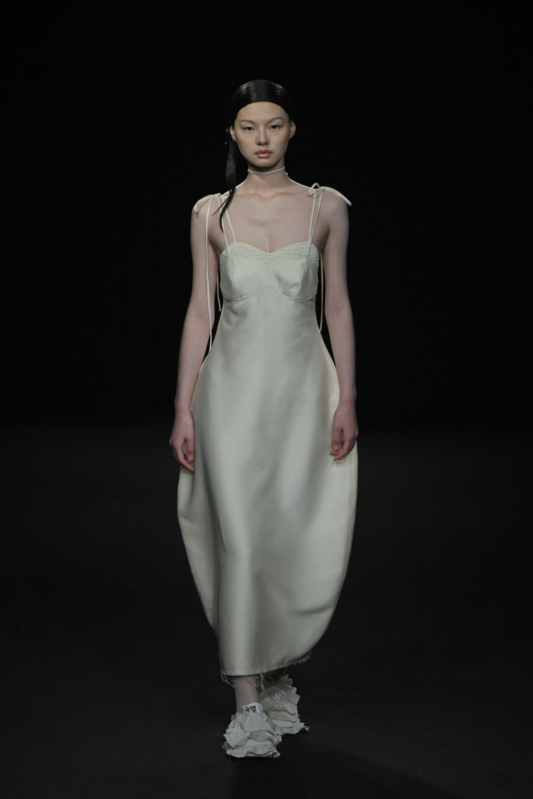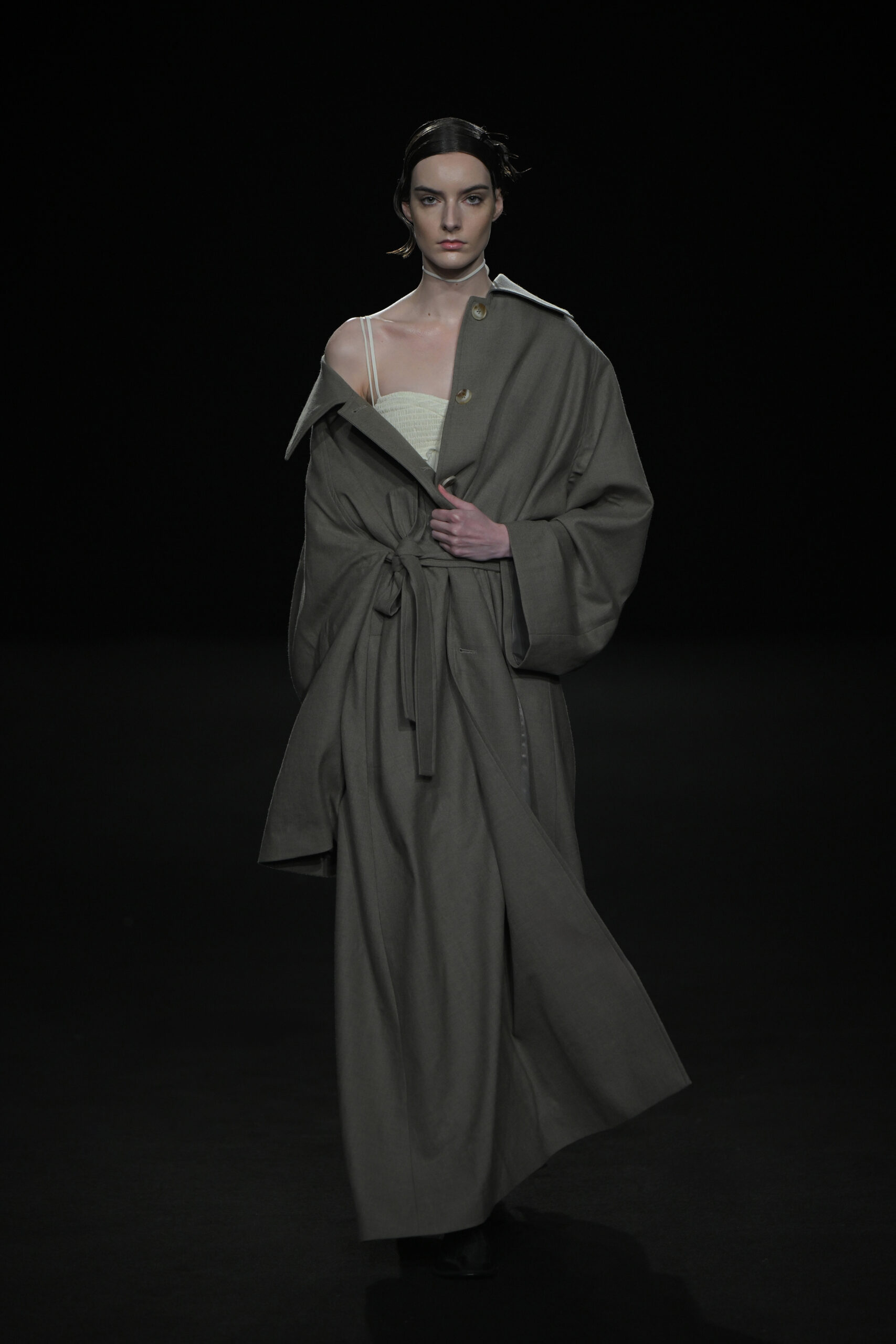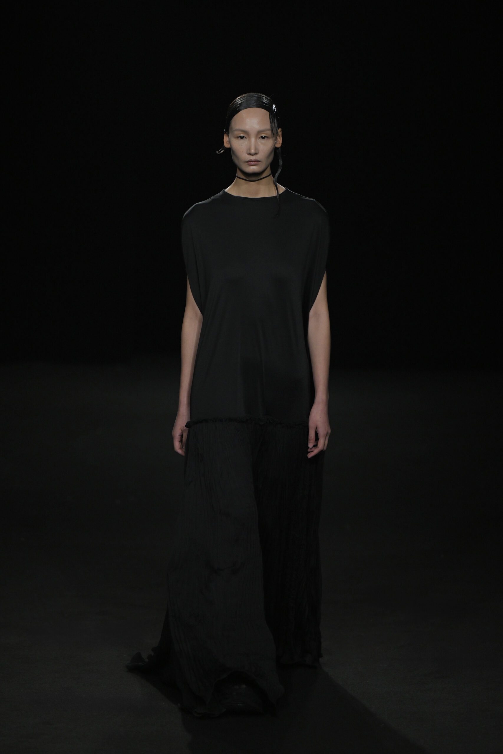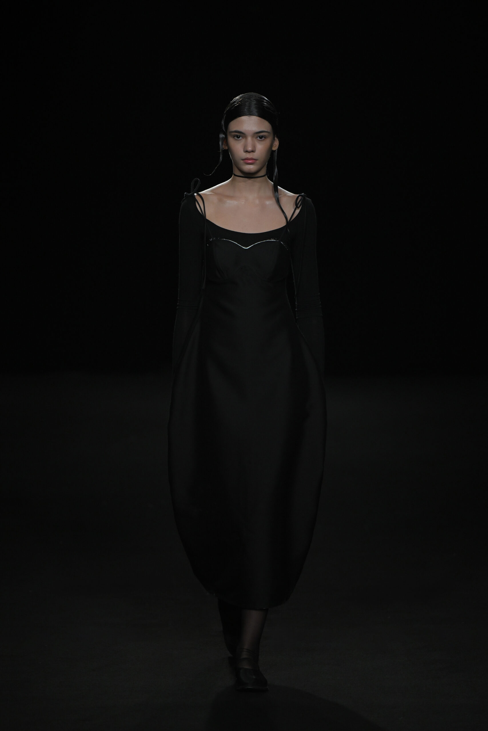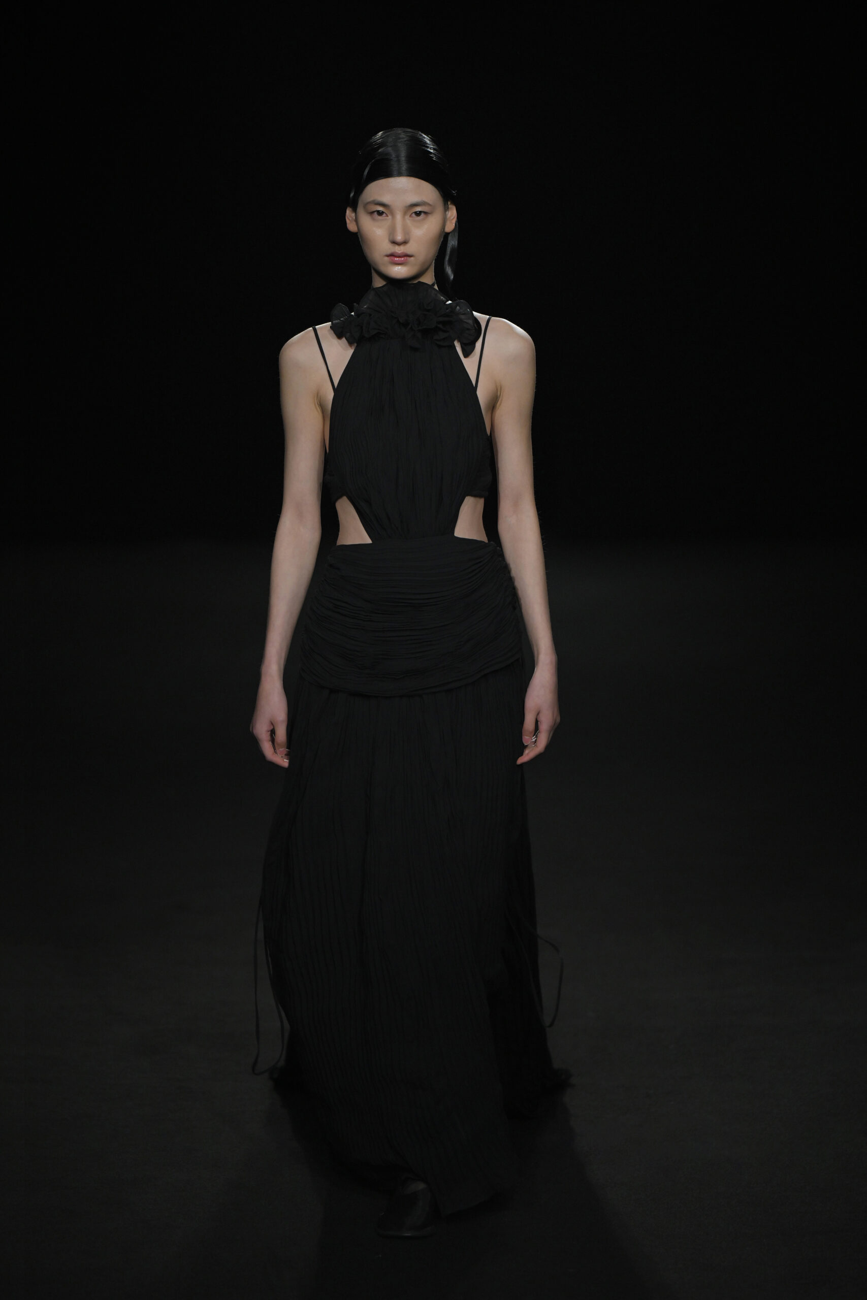 Contrairement à la collection précédente, qui évoquait une promenade ensoleillée le long de la côte Amalfitaine, cette nouvelle ligne invite à une exploration poétique des émotions humaines, marquée par un contraste saisissant de couleurs allant du blanc spectral aux gris sereins et aux roux profonds. L’utilisation emblématique des techniques de plissage signature d’ASSIGNMENTS, alliée à la transparence des tissus, confère à chaque pièce une légèreté éthérée, rappelant la silhouette fantomatique de Giselle.