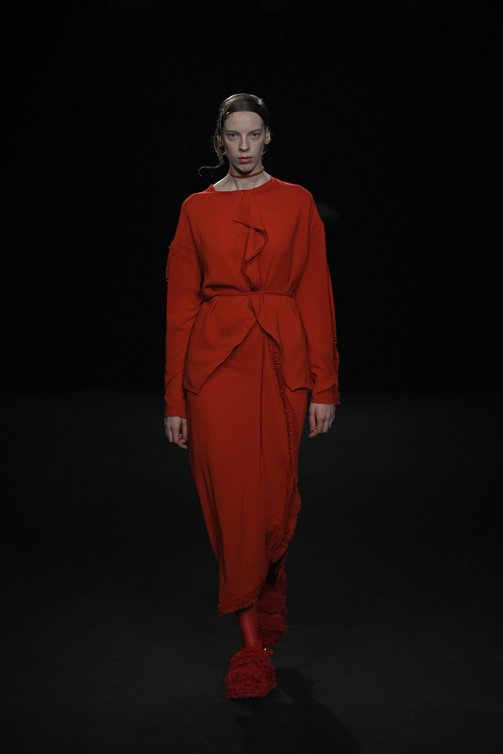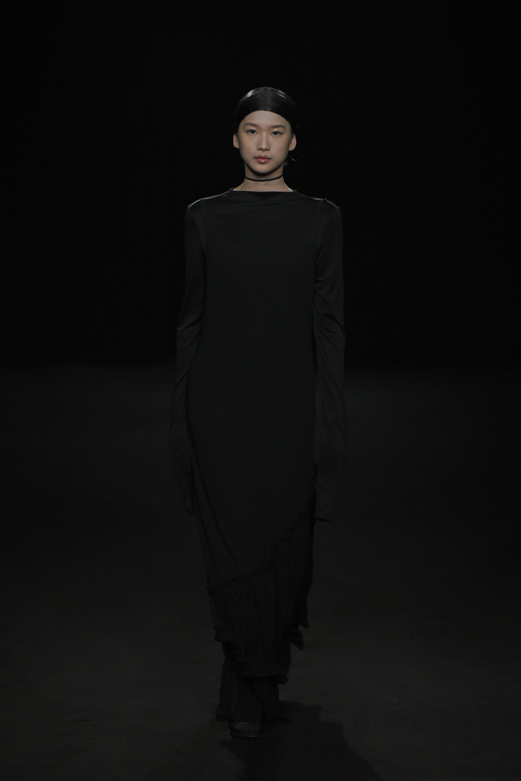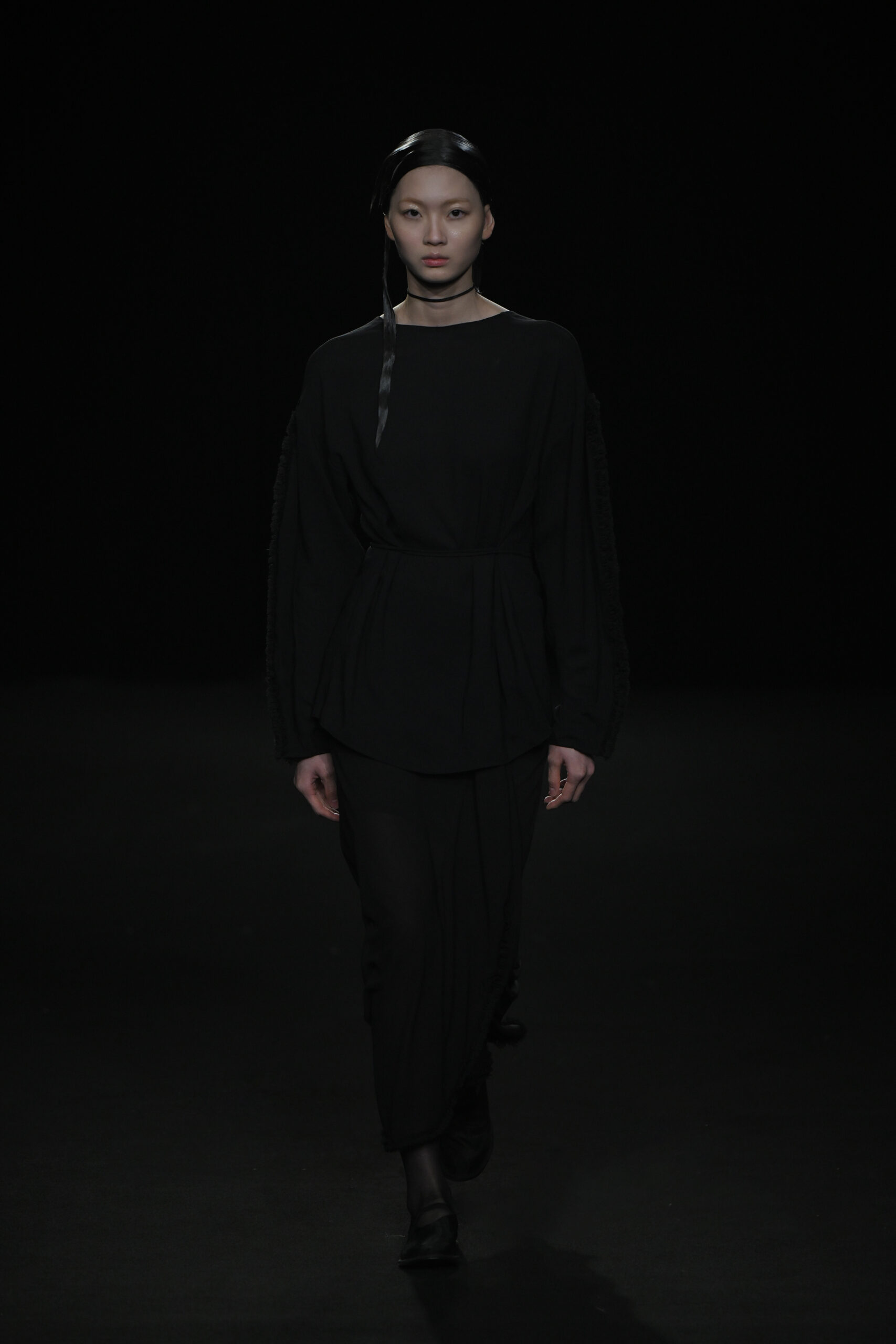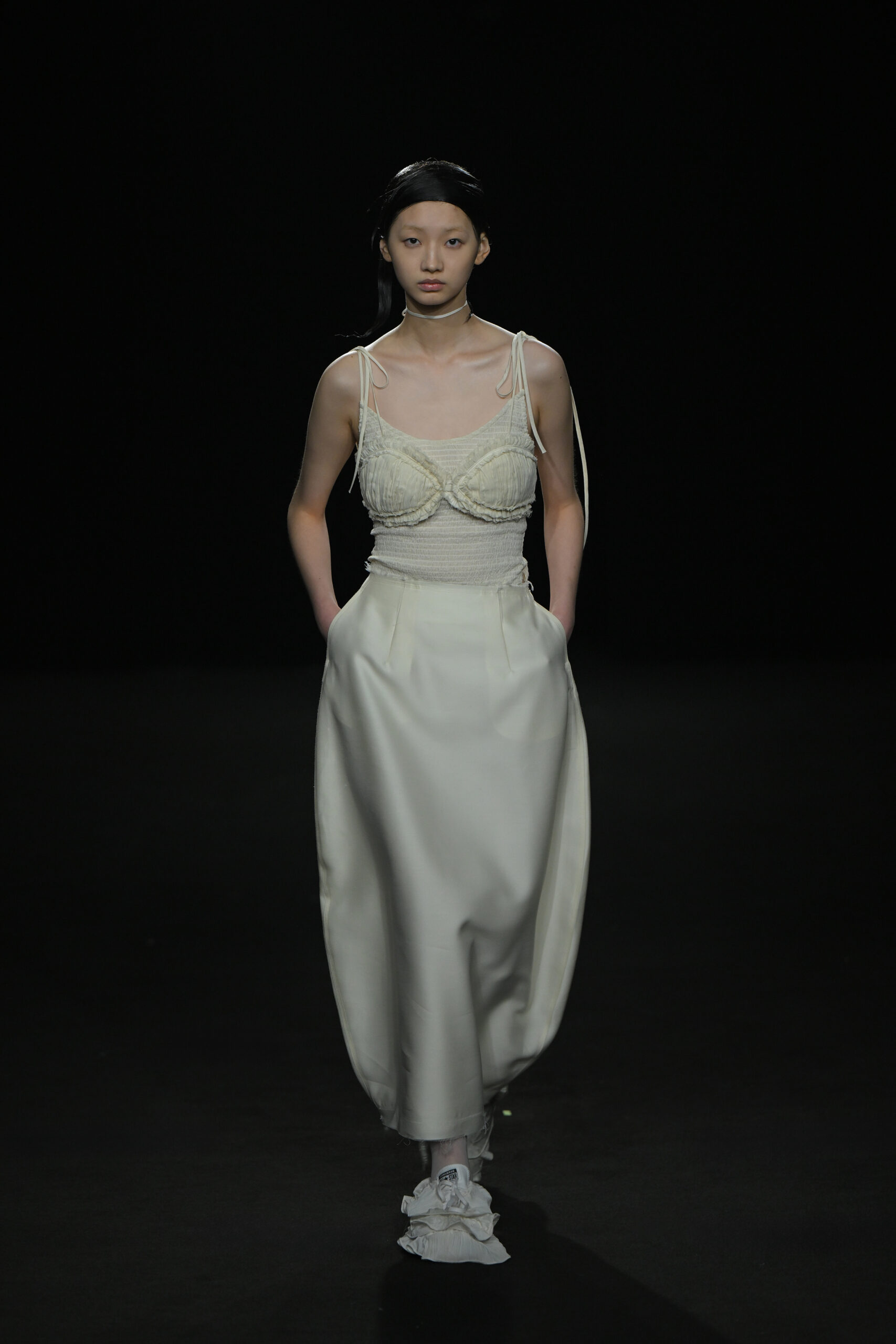 Contrairement à la collection précédente, qui évoquait une promenade ensoleillée le long de la côte Amalfitaine, cette nouvelle ligne invite à une exploration poétique des émotions humaines, marquée par un contraste saisissant de couleurs allant du blanc spectral aux gris sereins et aux roux profonds. L’utilisation emblématique des techniques de plissage signature d’ASSIGNMENTS, alliée à la transparence des tissus, confère à chaque pièce une légèreté éthérée, rappelant la silhouette fantomatique de Giselle.