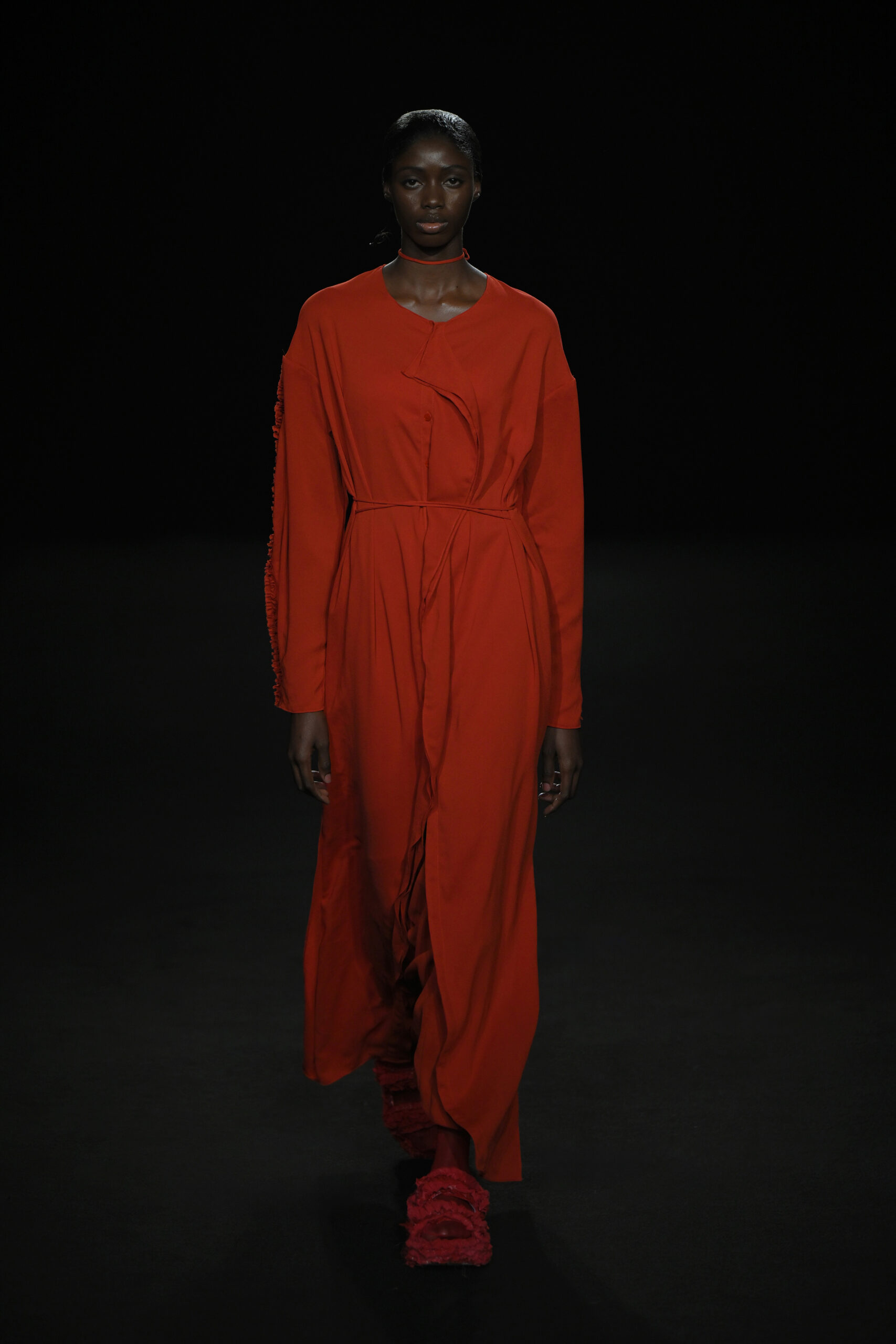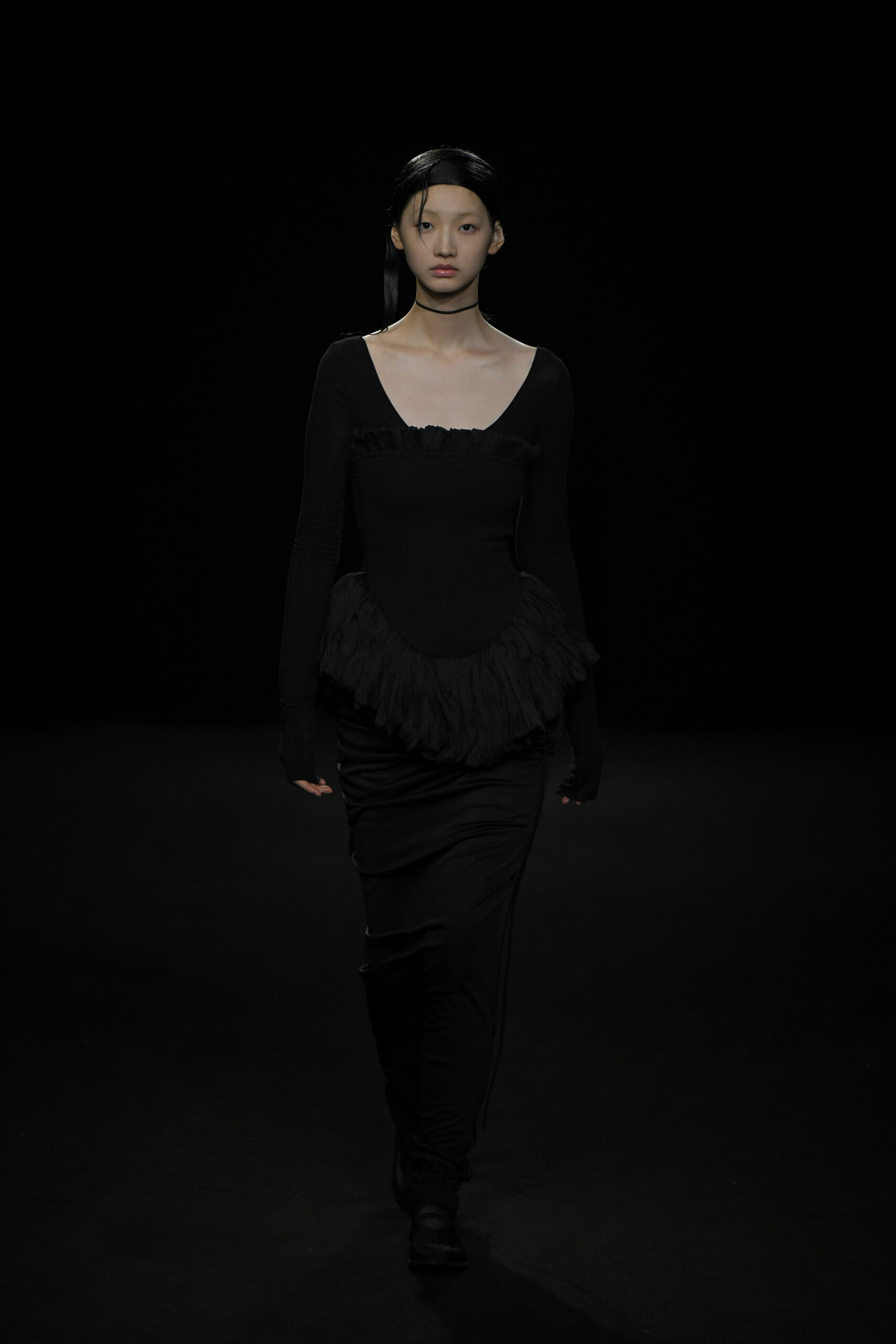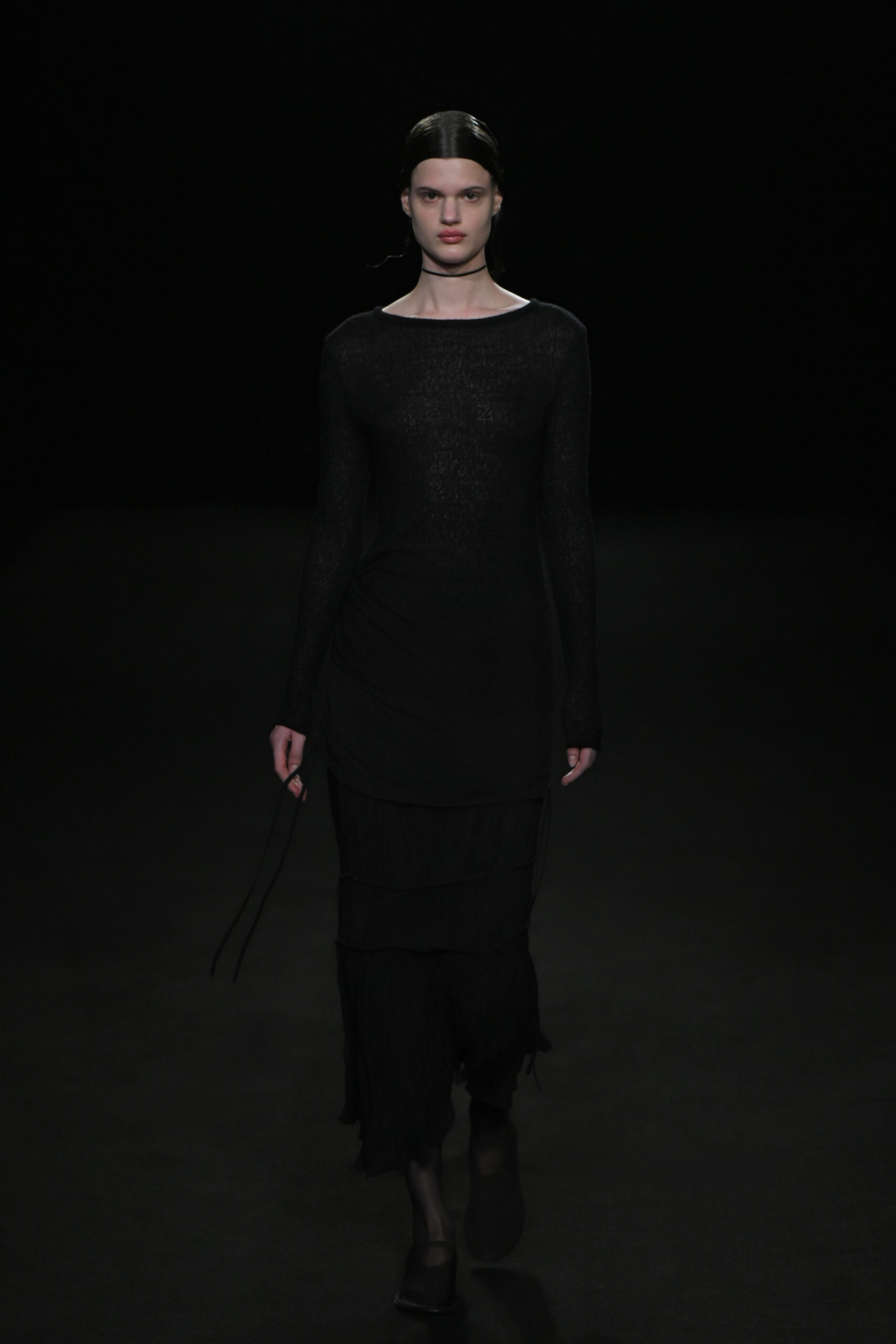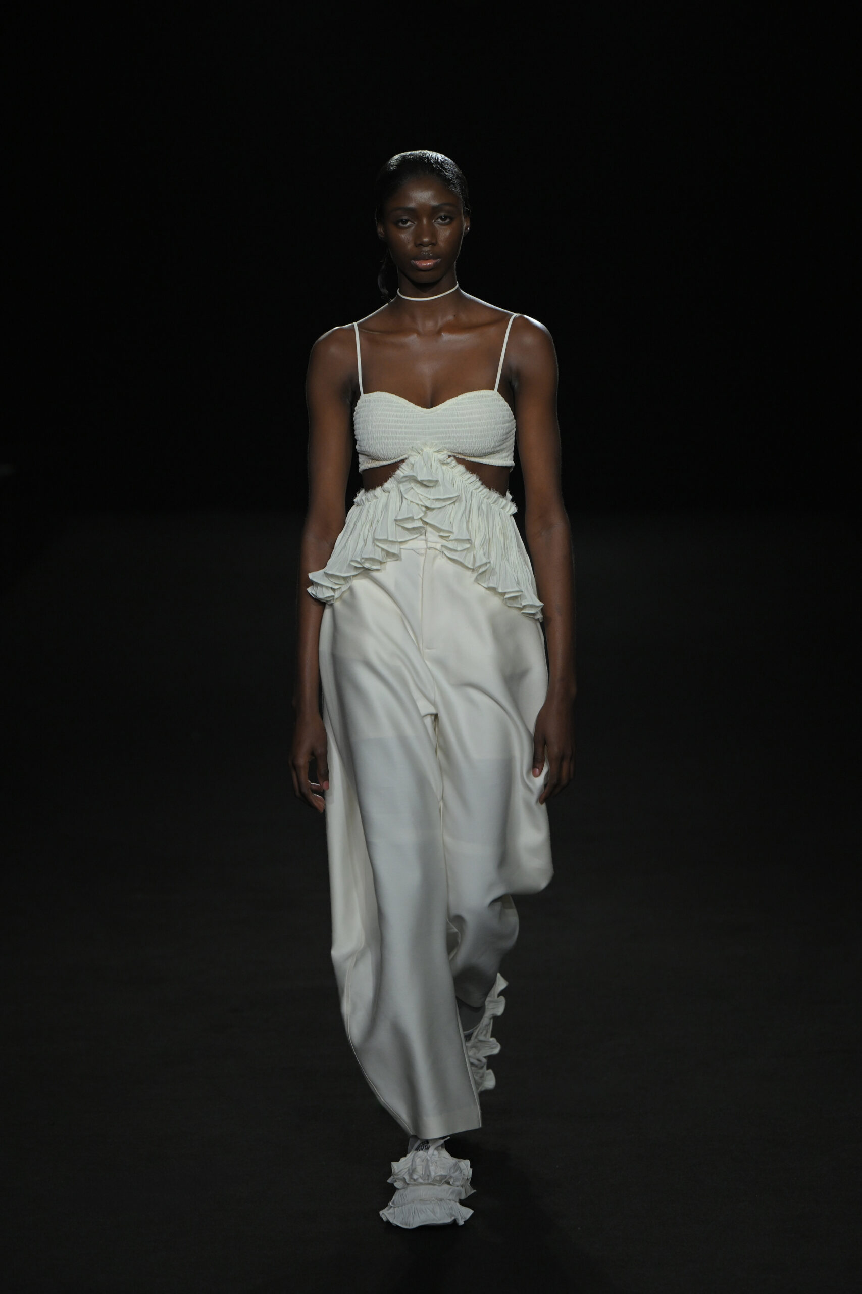 Contrairement à la collection précédente, qui évoquait une promenade ensoleillée le long de la côte Amalfitaine, cette nouvelle ligne invite à une exploration poétique des émotions humaines, marquée par un contraste saisissant de couleurs allant du blanc spectral aux gris sereins et aux roux profonds. L’utilisation emblématique des techniques de plissage signature d’ASSIGNMENTS, alliée à la transparence des tissus, confère à chaque pièce une légèreté éthérée, rappelant la silhouette fantomatique de Giselle.