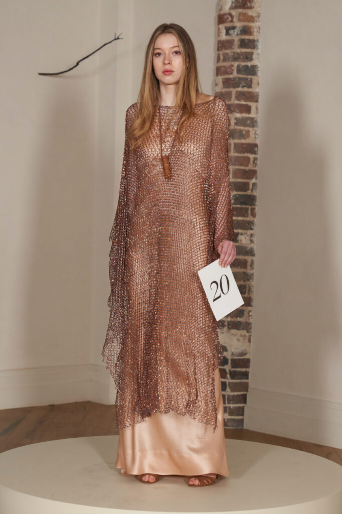Pour la première fois, le chanvre fait son apparition dans les créations de Julie de Libran. Issu d’une toute première récolte, ce matériau se distingue par son irrésistible imperfection. Brut et naturel, il apporte force et vigueur aux robes de la collection, qui marient des tops façon corsets à des jupons proéminents à la taille basse. Cette introduction du chanvre souligne l’engagement de la créatrice envers une mode durable et respectueuse de l’environnement.