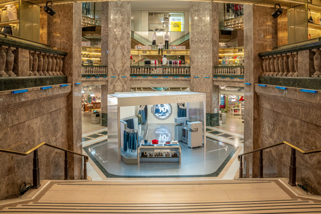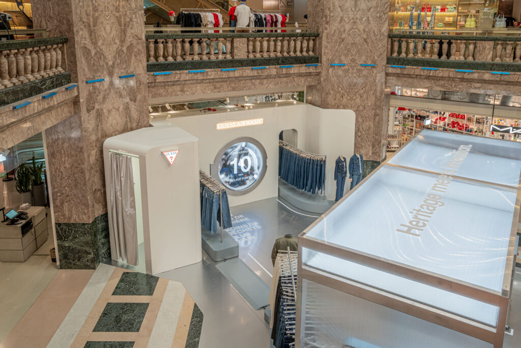 Cet été, GUESS JEANS et Nicolai Marciano dévoilent leur technologie révolutionnaire GUESS AIRWASHTM aux Galeries Lafayette Champs-Élysées. Cette installation éphémère, présente dans l’atrium principal et le tunnel d’entrée, s’intègre dans le cadre de « The Next 40 Years of Denim », une initiative qui marque une étape importante pour la marque.