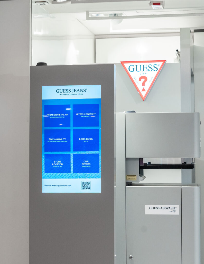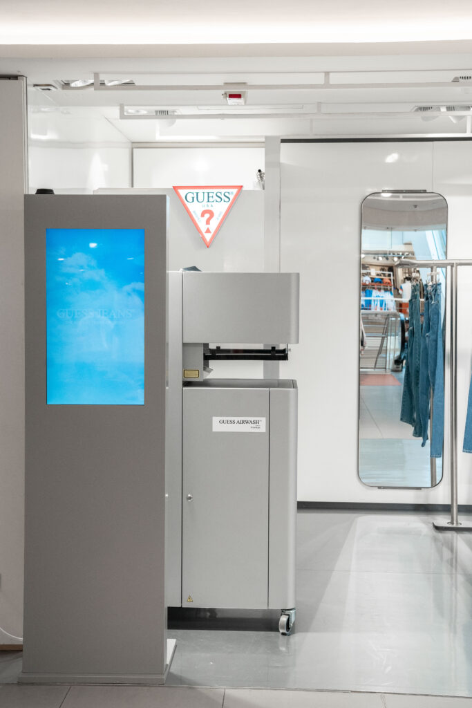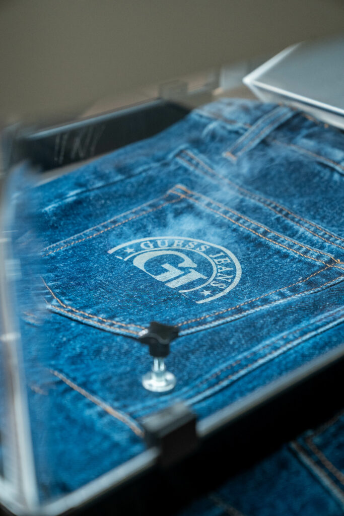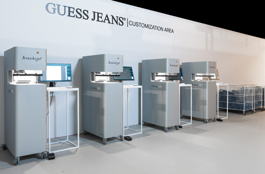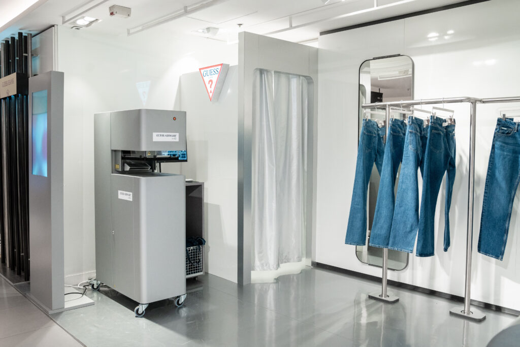 L’installation aux Galeries Lafayette permet aux clients de personnaliser leur jean en temps réel grâce à une technologie laser avancée, offrant une expérience d’achat unique. Cette personnalisation met en avant l’engagement de GUESS JEANS pour une mode individualisée et innovante.
