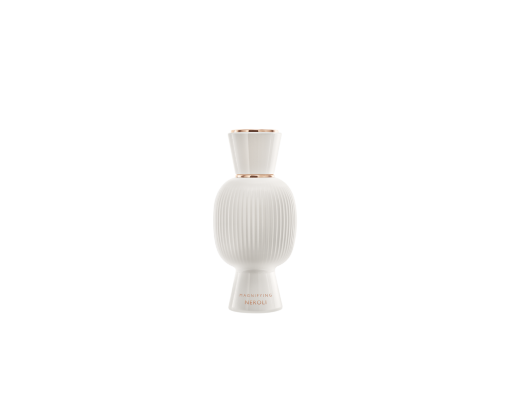 Magnifying Néroli, nouvelle essence de la collection Bvlgari Allegra, propose une interprétation audacieuse et vivante de la fraîcheur intense du néroli. Originaire du sud de l’Himalaya et introduit en Italie au 13e siècle, le néroli est réputé pour ses pétales blancs et son parfum pur et délicat, souvent utilisé dans les mariages pour symboliser la pureté.
