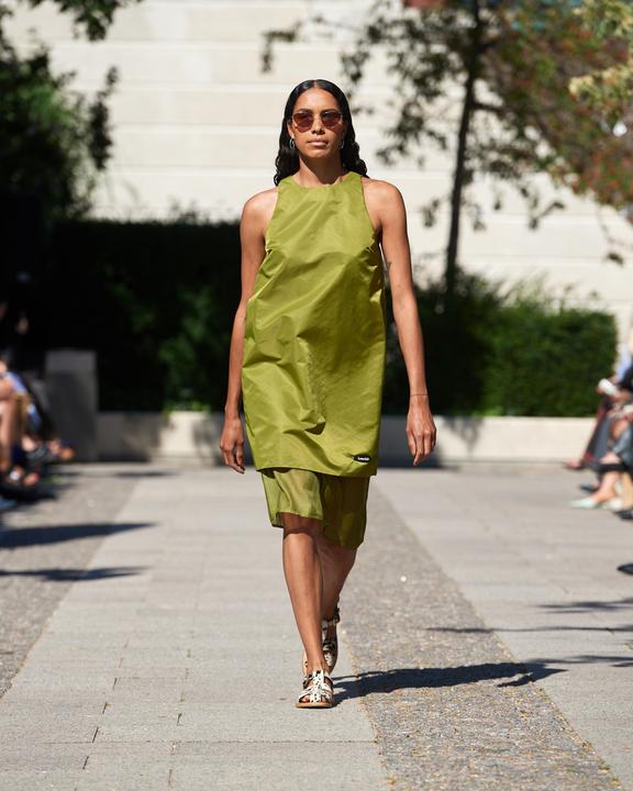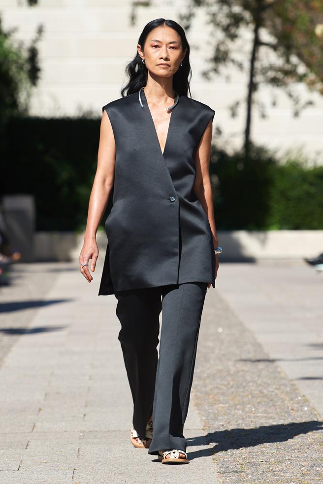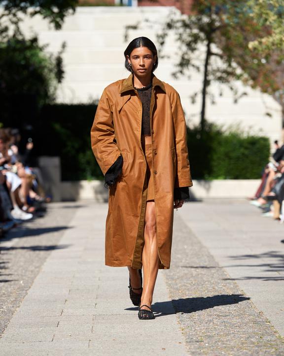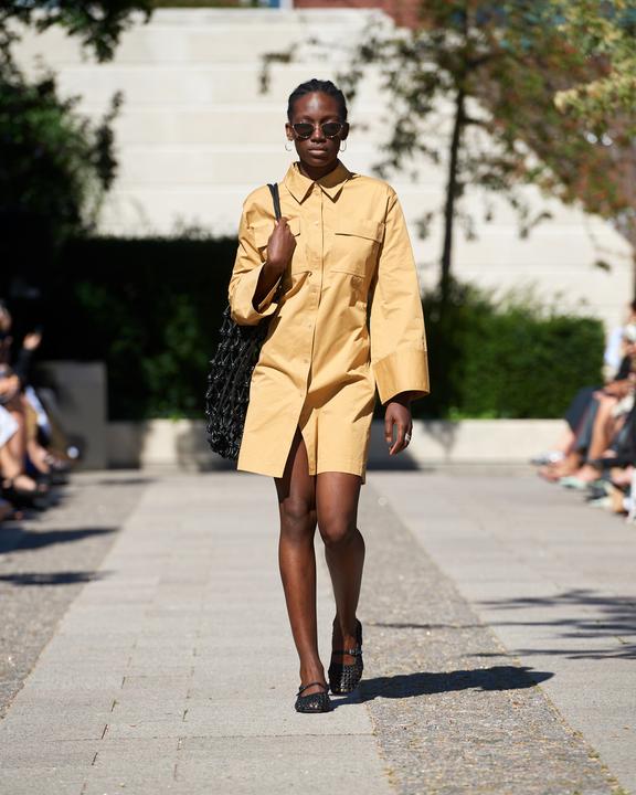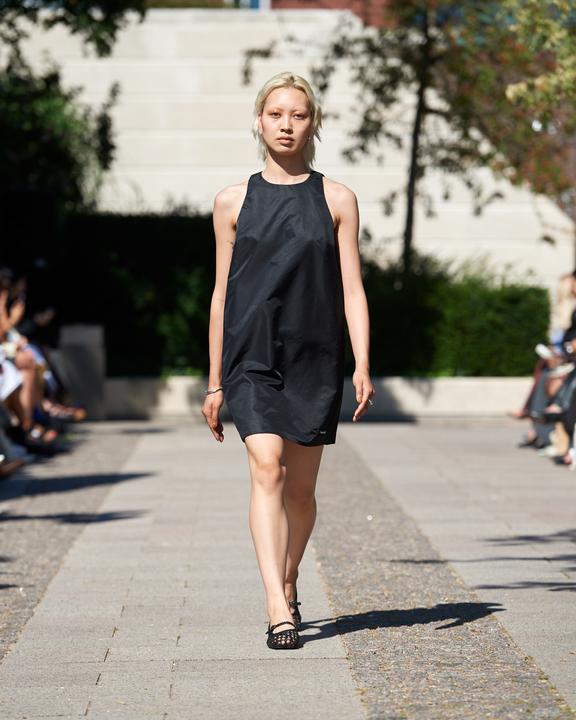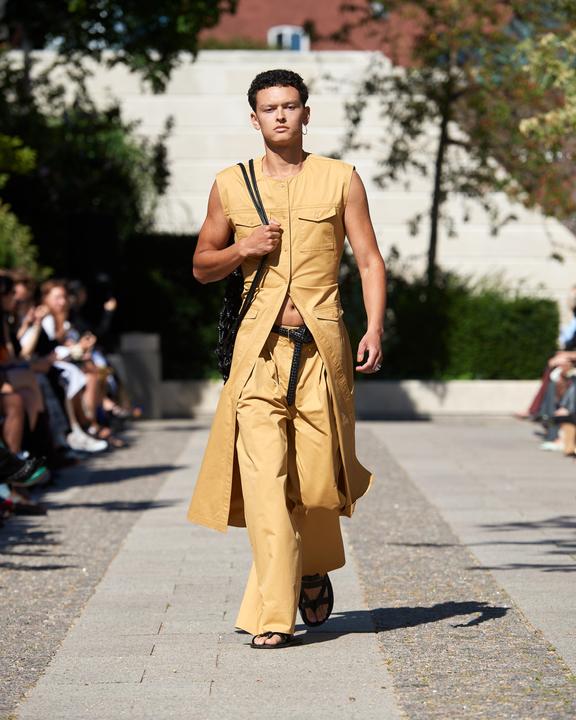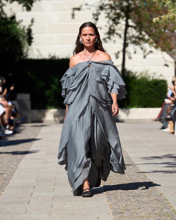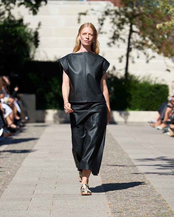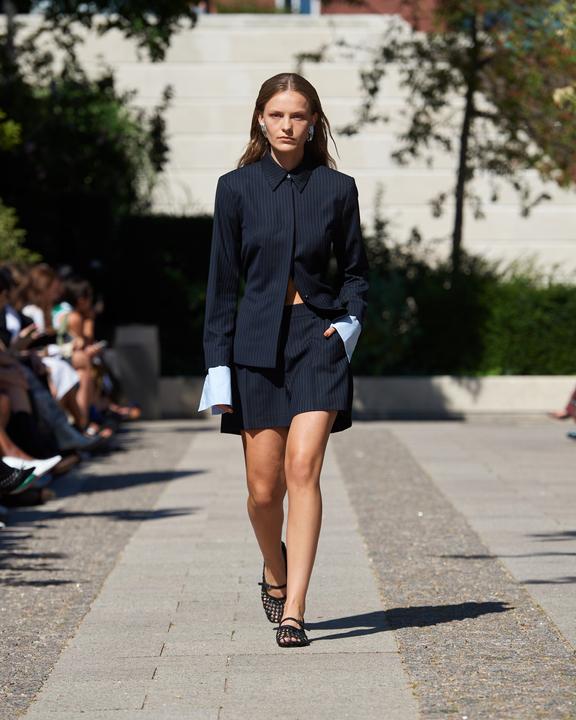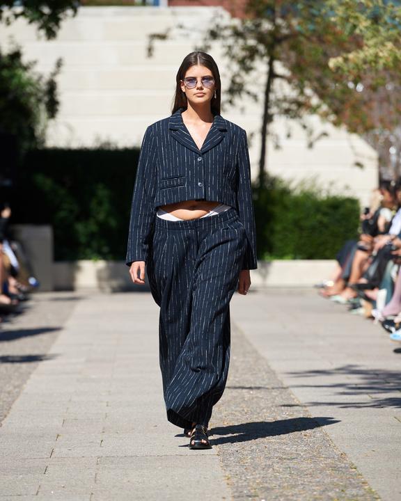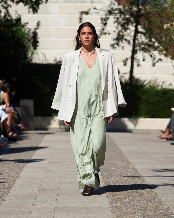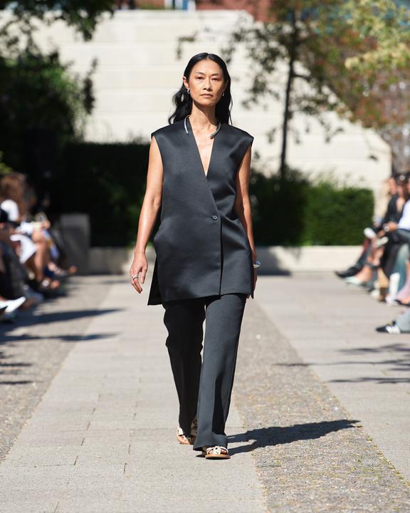 La collection reflète les frontières floues entre le travail et la vie privée. Présentée lors de la Semaine de la Mode de Copenhague en août 2024 contre le fond architectural et minimaliste d’Amaliehaven. Ce jardin, avec ses formes claires et nettes, ses œuvres en pierre, sa verdure sculpturale et ses fontaines, fournit un cadre magnifique pour la collection. Elle capture l’essence des femmes d’affaires passant sans effort de leur environnement professionnel aux occasions du soir, incarnant la fluidité et la sophistication de la tenue de travail moderne.
