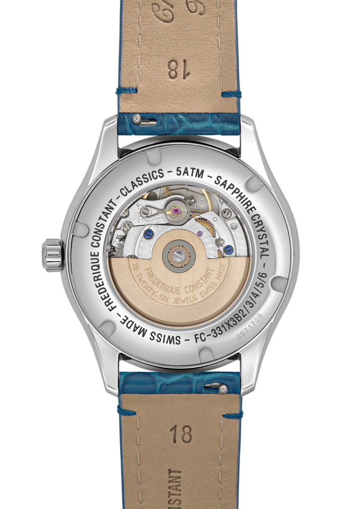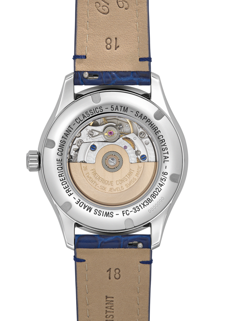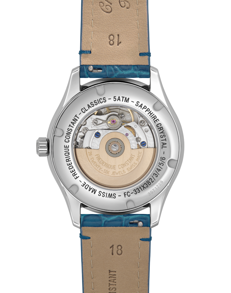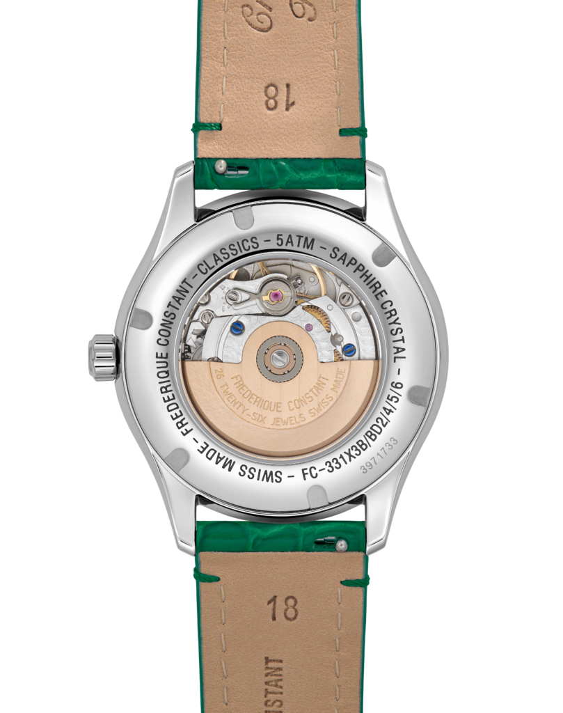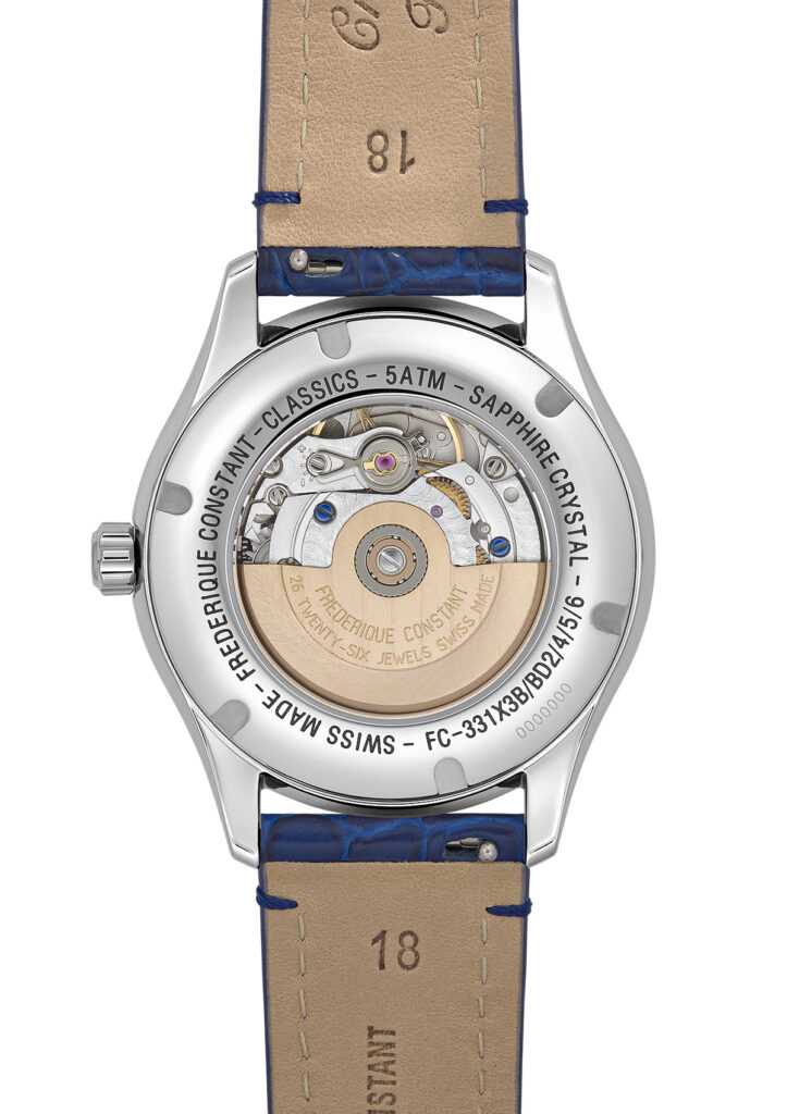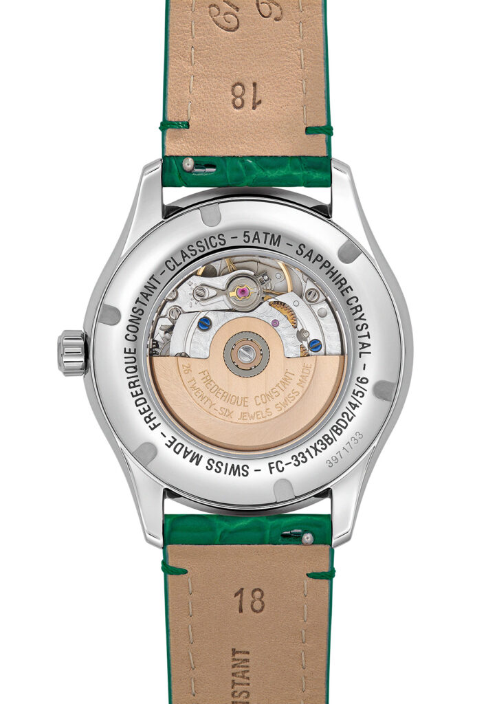 Le cœur de chaque montre Classics Elegance Luna est animé par le calibre automatique FC-331, offrant une réserve de marche de 38 heures. Ce mouvement de haute précision, oscillant à 28’800 alternances par heure et comprenant 26 rubis, garantit une fiabilité et une performance impeccables.