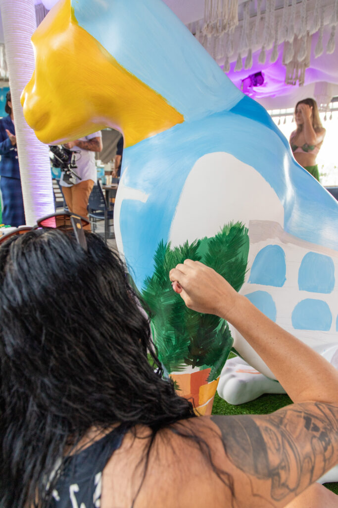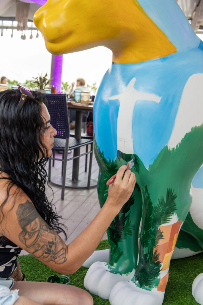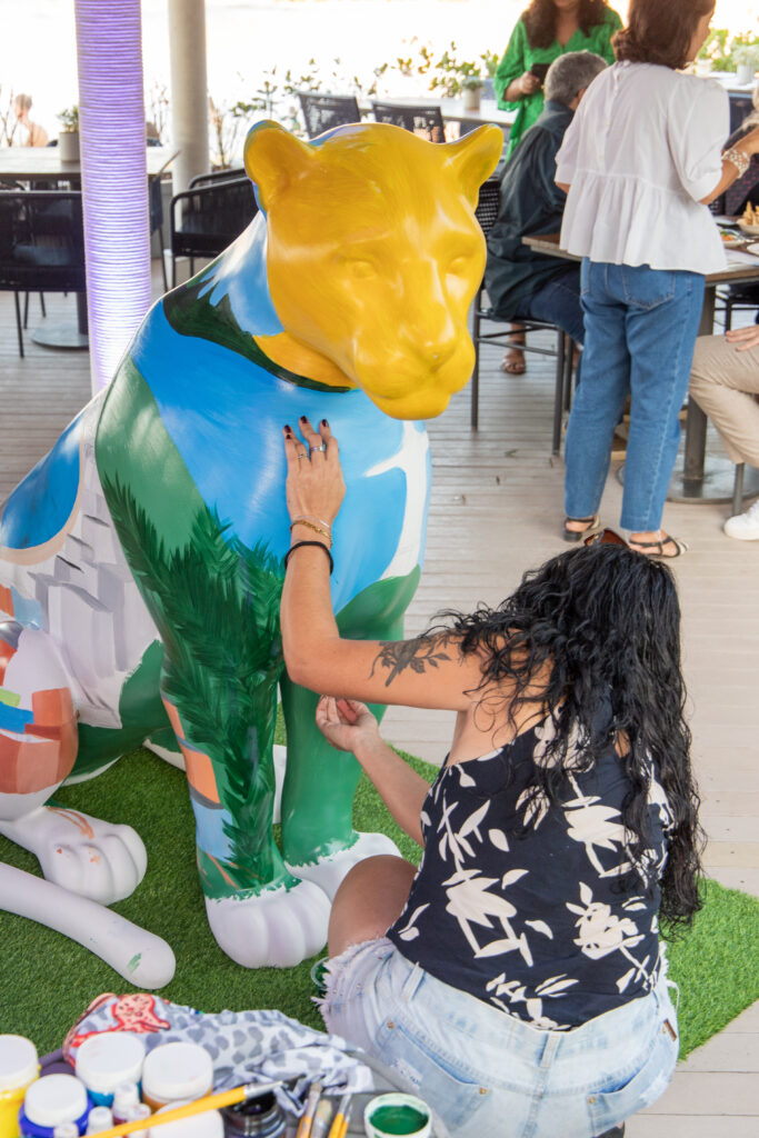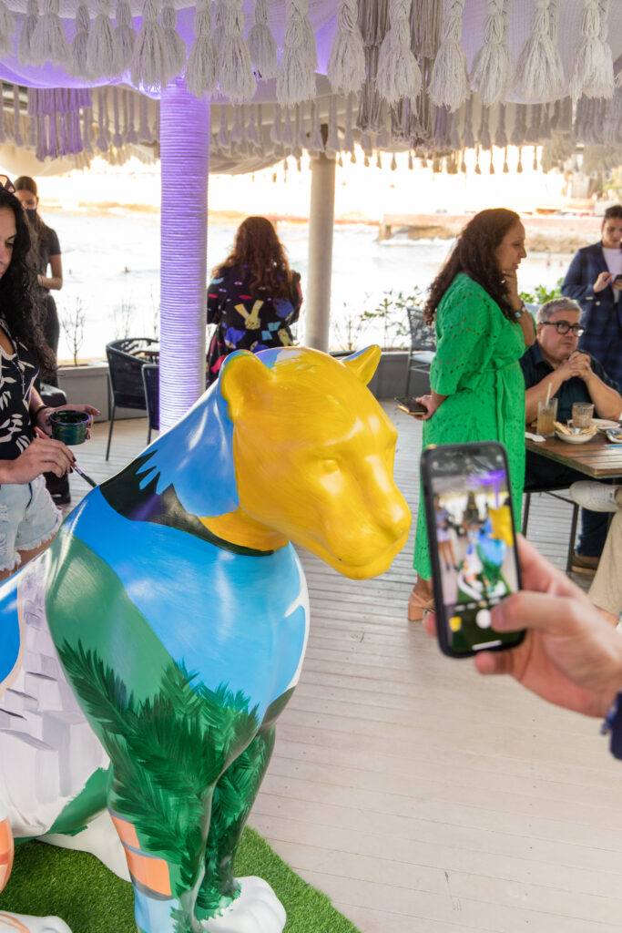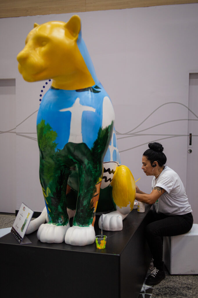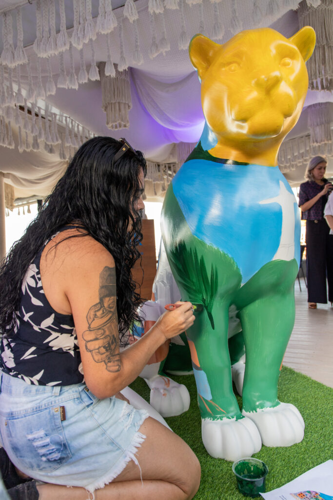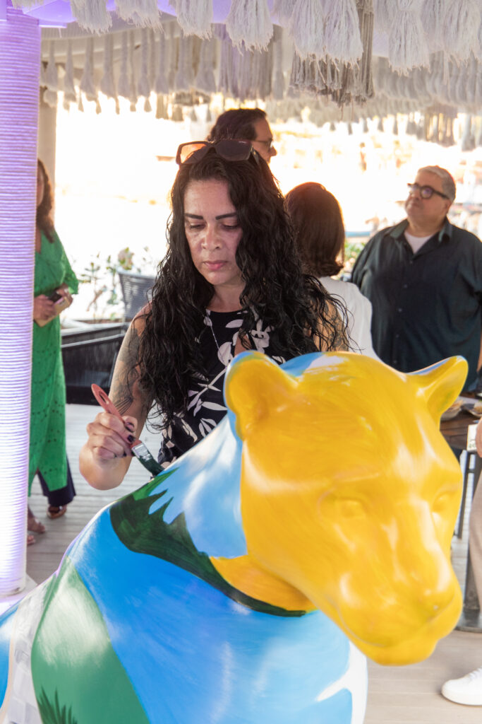 Le 26 juin, Viviane Ribeiro a transformé une sculpture de jaguar vierge en « Jaguar Carioca » lors d’une session de peinture en direct au Tropìk Beach Club. Cette magnifique pièce sera bientôt exposée au Fairmont Rio pour sensibiliser davantage à la conservation des jaguars. En plus de cette œuvre, le Fairmont Rio présentera dix autres sculptures de jaguars devant l’hôtel. Parmi les pièces notables, on retrouve « Onça Nativa » de Marin, « Festa das Cores » de Pri Artte, « Alvo » de Felipe Morozini, « Jaguar Carioca » d’Anny Vii, et « A Arte Importa » d’Anninha. Les revenus de l’exposition seront reversés à l’ONG Onçafari.