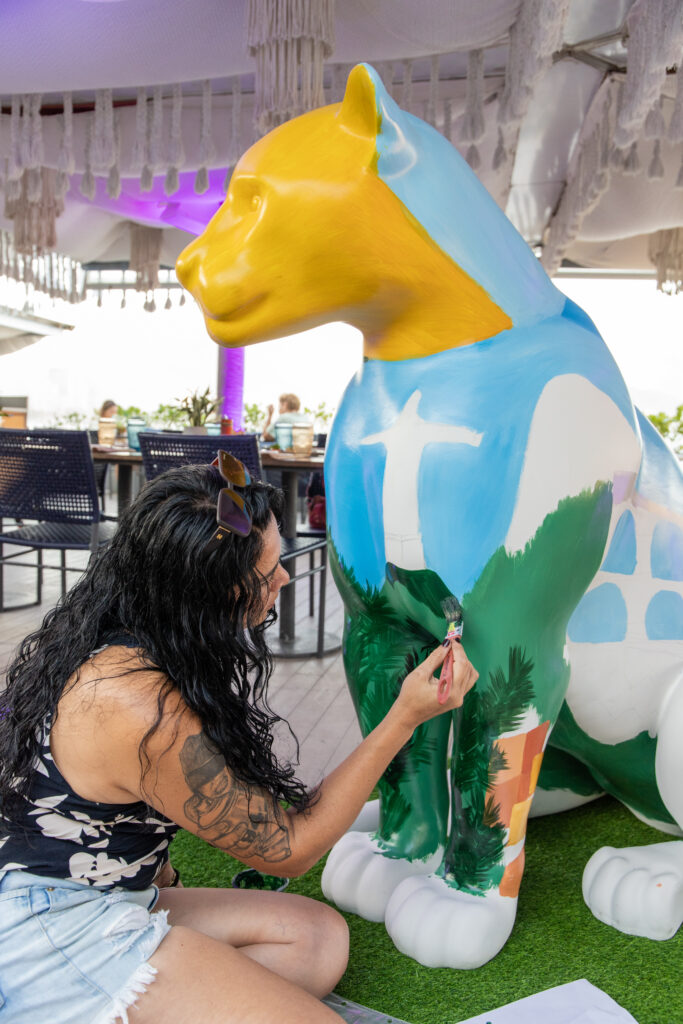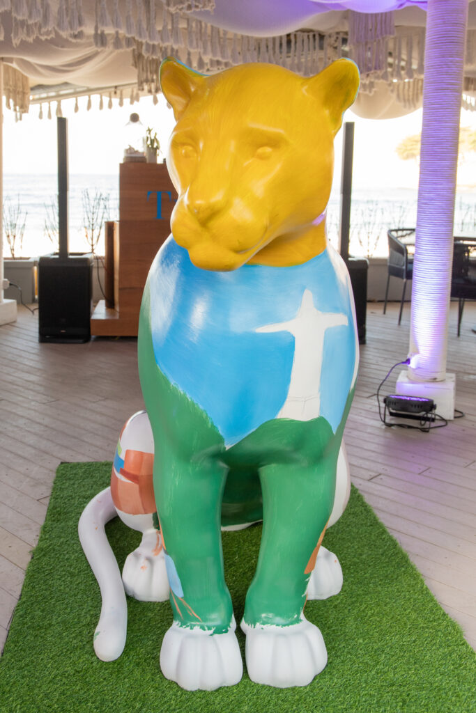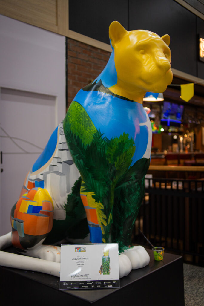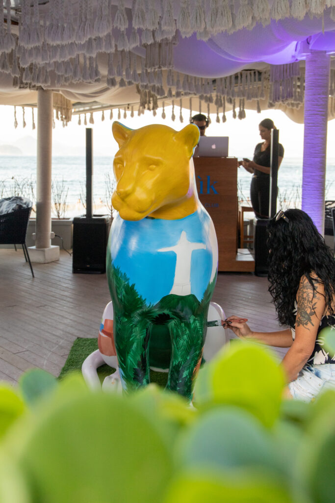 L’artiste brésilienne Viviane Ribeiro a récemment captivé les visiteurs du Tropìk, le beach club du Fairmont Rio à Copacabana, en transformant une sculpture de jaguar vierge en une œuvre d’art intitulée « Jaguar Carioca ». Cette sculpture sera bientôt exposée au Fairmont Rio dans le cadre de la Jaguar Parade 2024, un événement consacré à la sensibilisation à la conservation des jaguars et à la protection de leur habitat naturel.