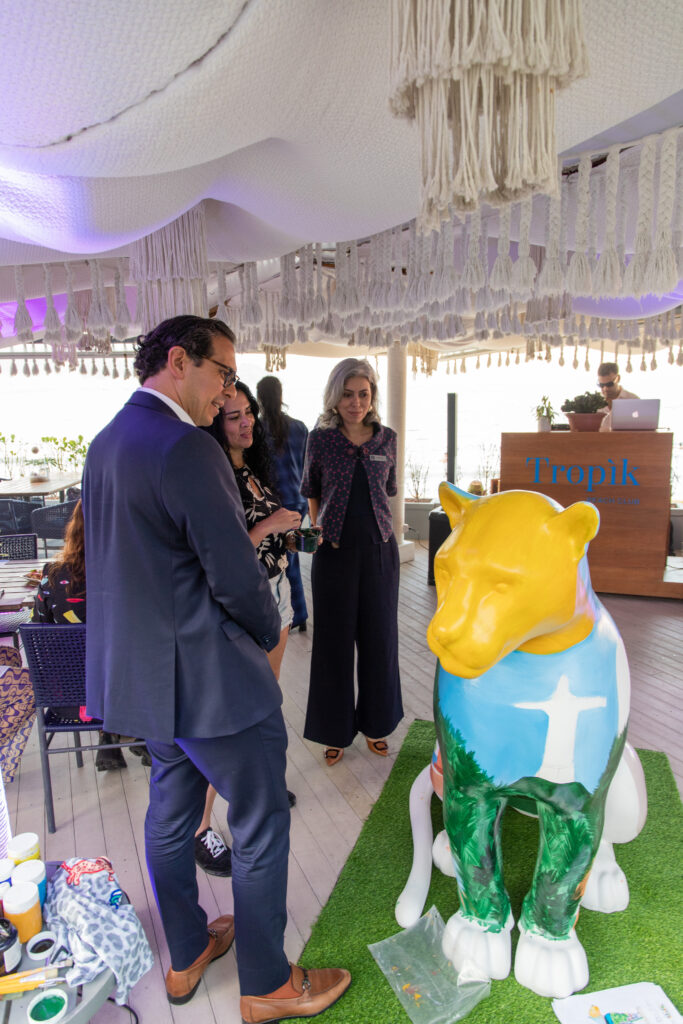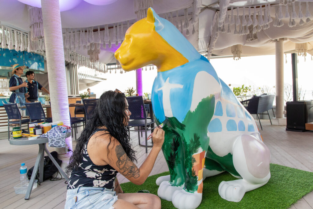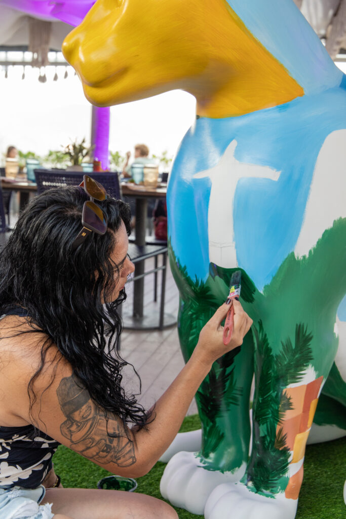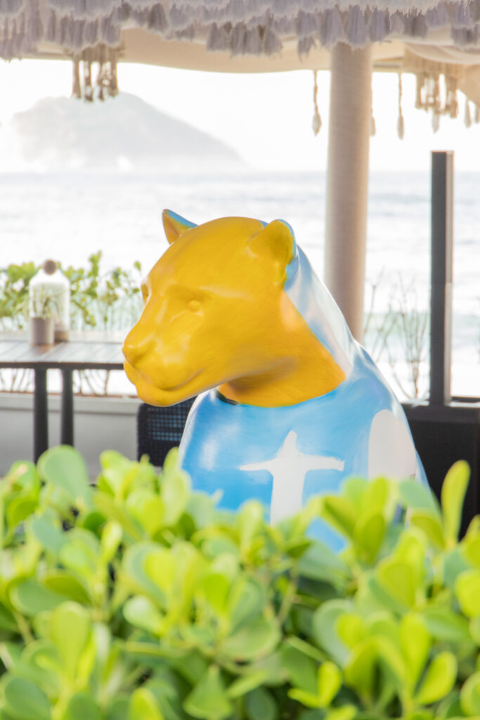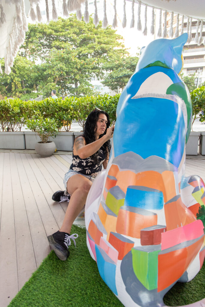 L’artiste brésilienne Viviane Ribeiro a récemment captivé les visiteurs du Tropìk, le beach club du Fairmont Rio à Copacabana, en transformant une sculpture de jaguar vierge en une œuvre d’art intitulée « Jaguar Carioca ». Cette sculpture sera bientôt exposée au Fairmont Rio dans le cadre de la Jaguar Parade 2024, un événement consacré à la sensibilisation à la conservation des jaguars et à la protection de leur habitat naturel.