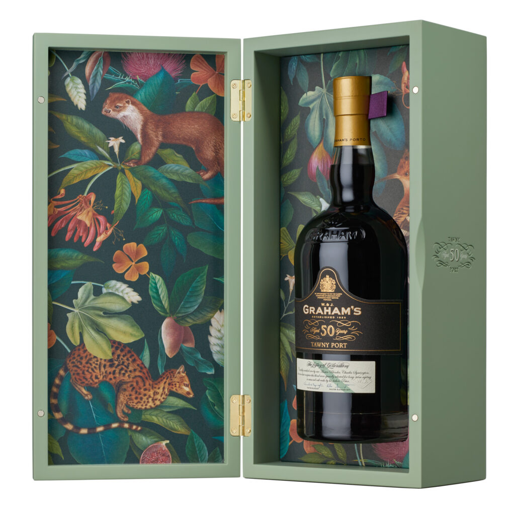 La collection « Aged Tawny » de Graham’s s’inspire de la maturité et de la rareté de chaque porto tawny âgé. Le coffret en bois, renfermant ce précieux nectar, est décoré d’illustrations réalisées par l’artiste portugaise Mariana Rodrigues. Ces œuvres représentent quelques-unes des espèces végétales et animales les plus rares de la vallée du Douro, dont le vignoble est classé au patrimoine mondial de l’UNESCO depuis 2001.