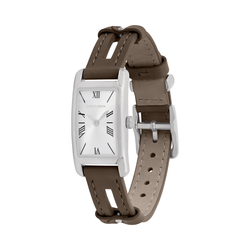 La montre PHILIPPINE est dotée d’un boîtier de 18×34 mm en acier argenté ou doré clair, avec un cadran blanc argenté soleillé. Elle fonctionne grâce à un mouvement quartz Miyota 5Y20, garantissant une précision et une fiabilité exemplaires.