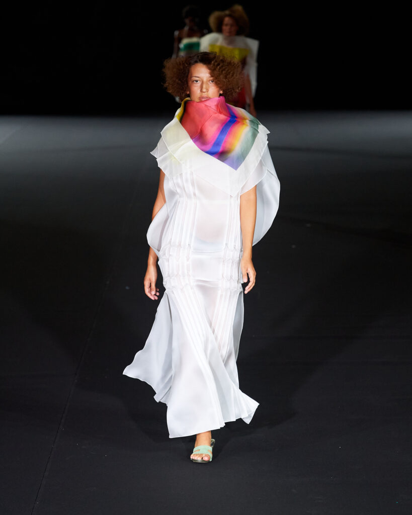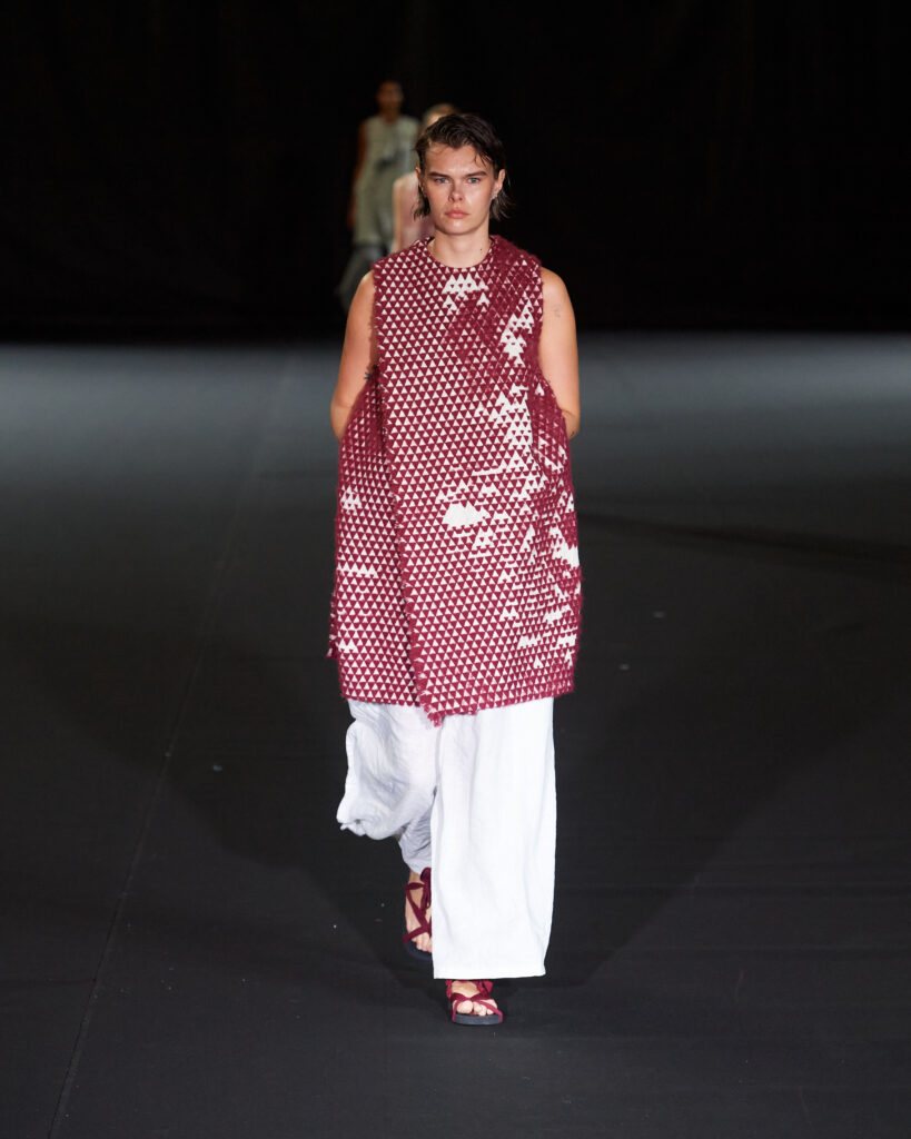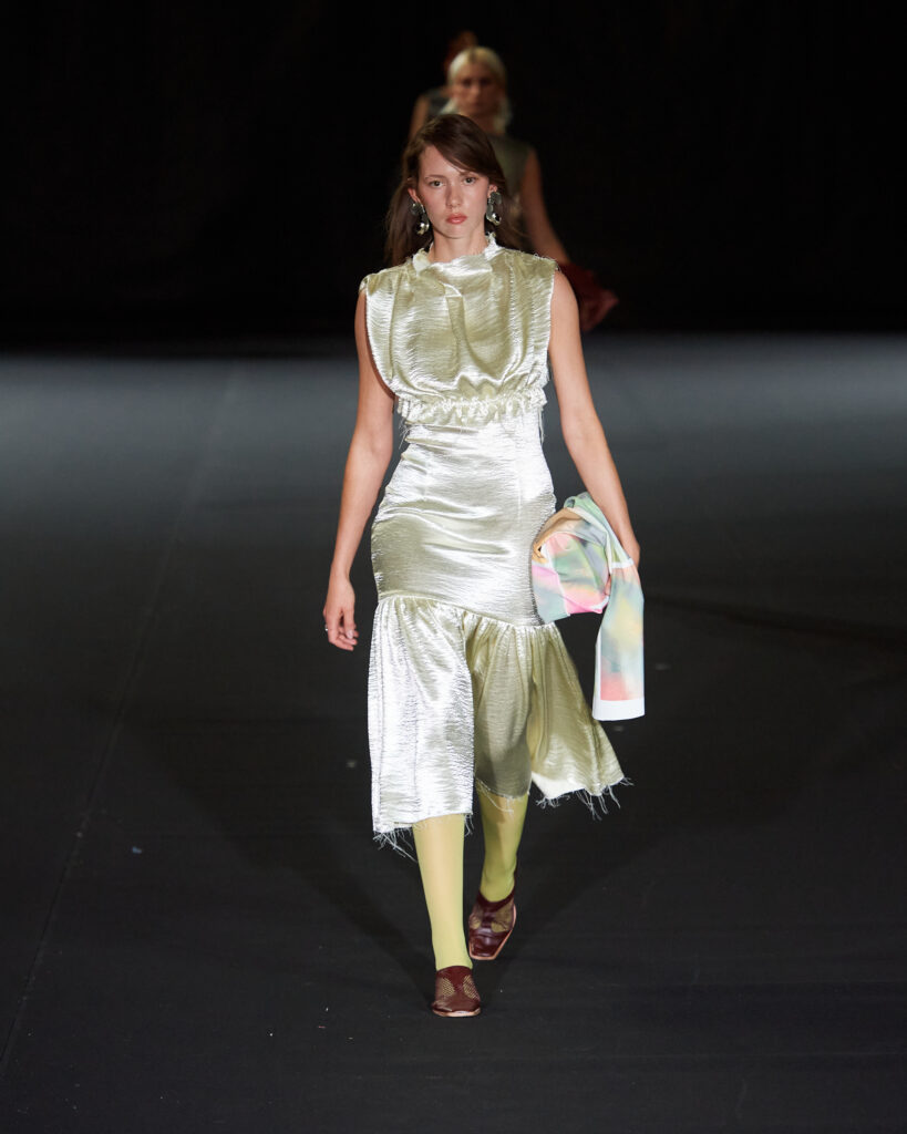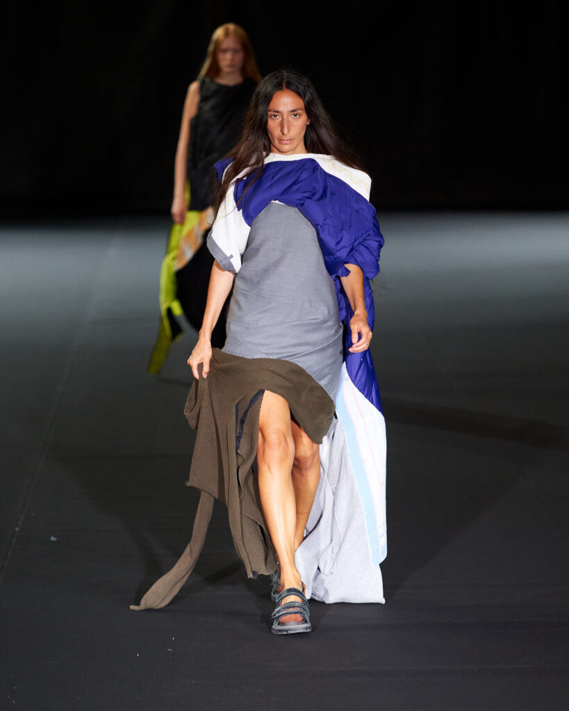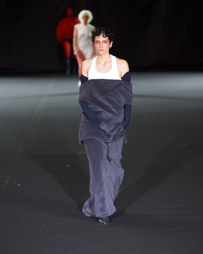 5. Sarah Blicher Bek : « Stay Soft » de Sarah Blicher Bek combine mode et philosophie pour explorer les juxtapositions entre le doux et le dur. Sa collection utilise des stratégies inclusives et la collaboration avec des artisans locaux pour promouvoir la longévité esthétique.