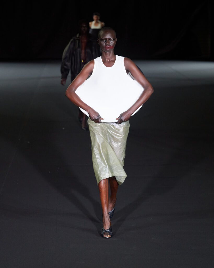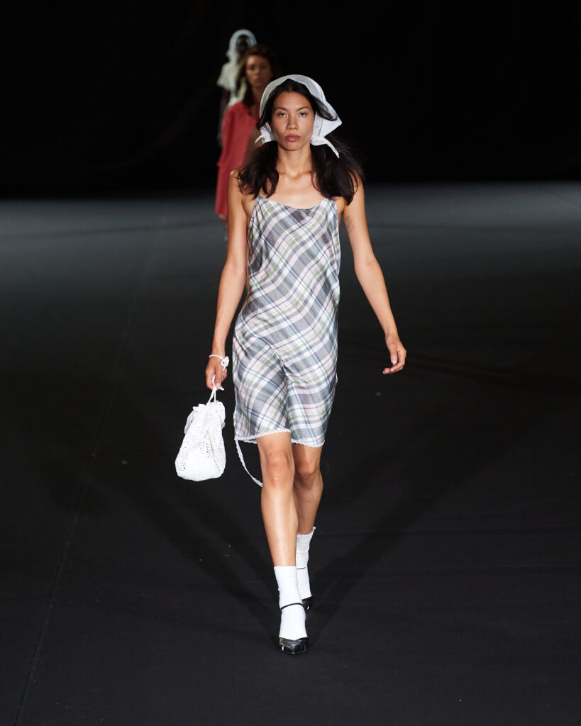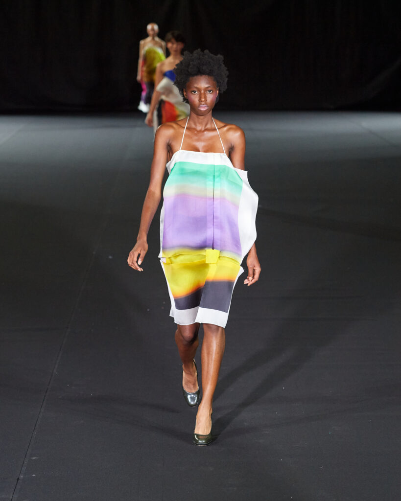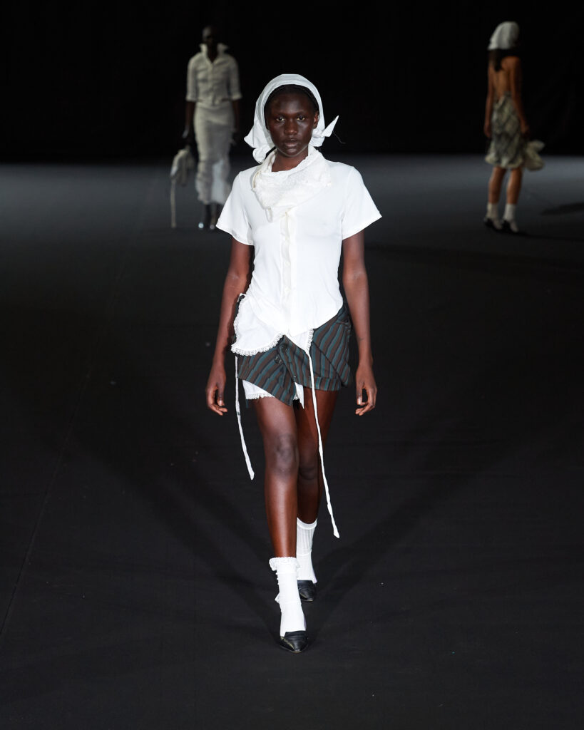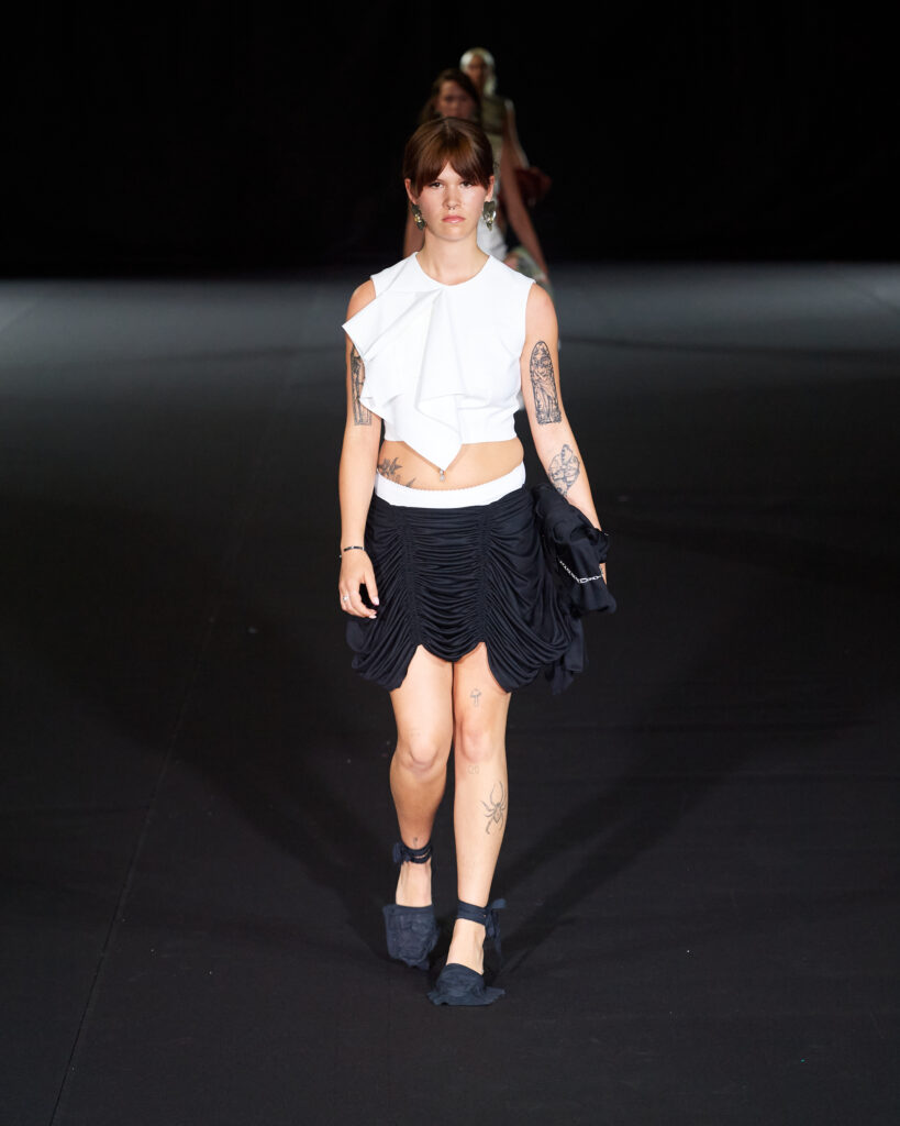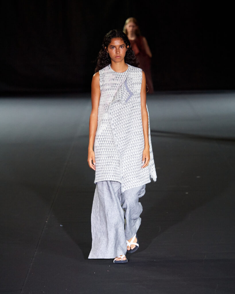 5. Sarah Blicher Bek : « Stay Soft » de Sarah Blicher Bek combine mode et philosophie pour explorer les juxtapositions entre le doux et le dur. Sa collection utilise des stratégies inclusives et la collaboration avec des artisans locaux pour promouvoir la longévité esthétique.