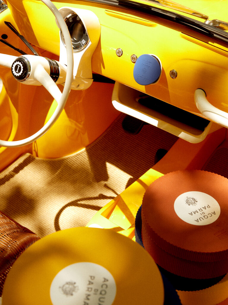 Dès le franchissement du seuil de cette boutique estivale, les visiteurs sont transportés dans un univers où se mêlent harmonieusement l’esprit méditerranéen et le savoir-faire italien. La designer française Dorothée Meilichzon, reconnue pour son style unique alliant tradition et modernité, a su capturer l’essence même d’Acqua di Parma dans cet espace éphémère. La lumière, omniprésente, baigne l’intérieur d’une atmosphère solaire, rappelant les notes d’agrumes si chères à la maison italienne.