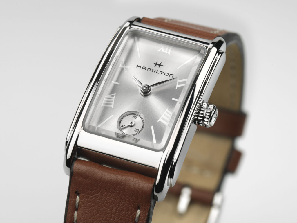 La montre Ardmore conserve son design distinctif avec un boîtier géométrique et un cadran unique. Hamilton introduit quatre nouvelles couleurs pour répondre à toutes les occasions, qu’elles soient formelles, professionnelles ou quotidiennes, tout en maintenant l’élégance qui caractérise cette montre depuis 87 ans.