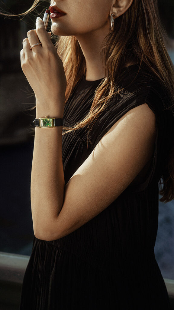 - Cadran Vert Émeraude et Boîtier PVD Or avec Bracelet en Cuir Noir : Une combinaison lumineuse et exubérante pour ceux qui recherchent un choix audacieux.