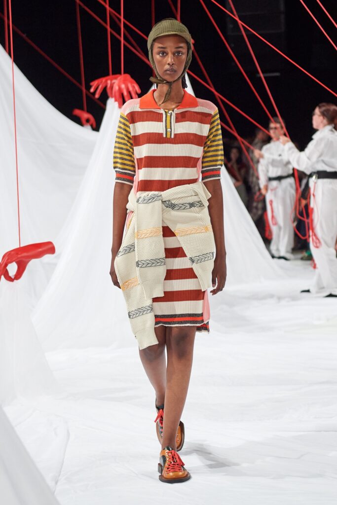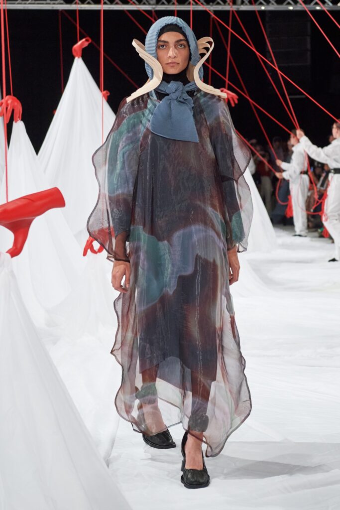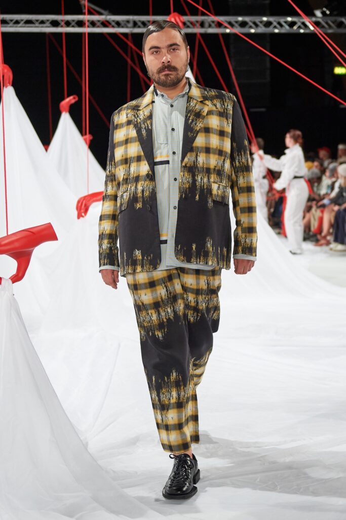 Henrik Vibskov et son équipe ont présenté leur nouvelle collection, The Orchestra of the Soft Assistance, lors de la Copenhagen Fashion Week, incarnant l’harmonie entre la compassion humaine et l’adaptabilité de la nature. Inspirée par la symbolique des mains, la collection met en avant leur rôle non seulement en tant qu’instruments d’aide physique, mais aussi comme symboles d’empathie profonde et de flexibilité. Vibskov explore comment les mains, en s’adaptant à diverses tâches, nous aident à nous ajuster aux besoins des autres et au monde qui nous entoure, soulignant ainsi l’importance de cette conscience.