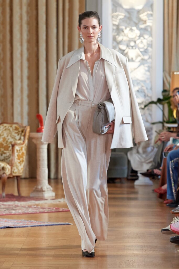 Gestuz présente une collection imprégnée de l’esprit de l’ère rock’n’roll des années 1970, incarnant la femme comme un symbole de liberté et de rébellion musicale. Le défilé s’est tenu dans une salle transformée en pavillon de concert rock, où la performance en direct de la chanteuse Brimheim a donné le ton à tout le spectacle. La directrice artistique de la marque, Sanne Sehested, s’est inspirée des femmes entourant les Rolling Stones pour créer des tenues riches de luxe et d’audace. La collection étonne par son mélange d’imprimés léopard, de détails en cuir et d’éléments brillants, créant un style à la fois unique et élégant. Ces modèles reflètent la confiance et le charisme des femmes qui dictent la mode et inspirent des expériences audacieuses.