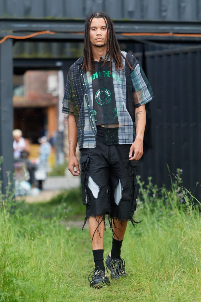 La marque Fine Chaos poursuit son chemin avant-gardiste, plongeant les spectateurs dans un avenir dystopique à travers le prisme de la déconstruction et de l’expression personnelle. Sa nouvelle collection propose une interprétation post-apocalyptique de la modernité, combinant des éléments opposés dans un design éclectique. Le défilé, accompagné de rythmes techno-rock, a créé une atmosphère tendue, reflétant l’esprit de la scène underground et les réalités sociales à travers des formes déchirées et déconstruites. Cette saison met l’accent sur les tissus recyclés et les silhouettes volumineuses, soulignant la vision sombre mais expressive de la marque sur la modernité. La palette sombre contraste harmonieusement avec des accents vifs, suggérant l’espoir et les perspectives lumineuses dans un présent chaotique.