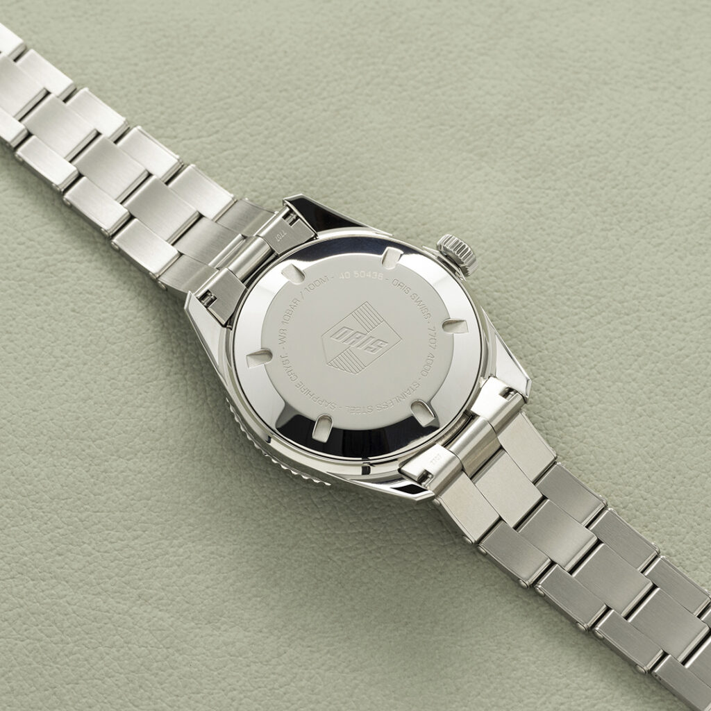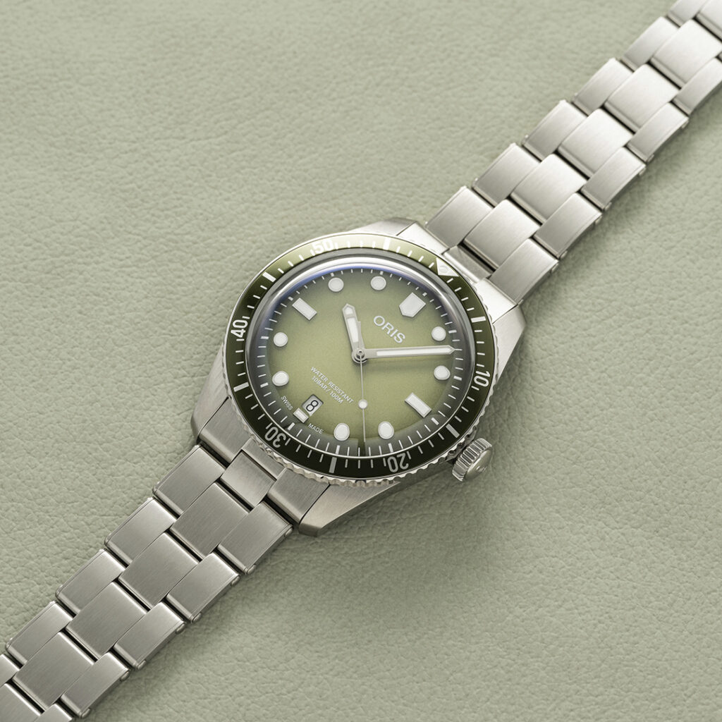 La nouvelle Oris Divers Sixty-Five 40 mm se distingue par son cadran et sa lunette aux couleurs dégradées, évoquant les forêts denses de la vallée de Waldenburg. Ce choix de couleurs n’est pas seulement esthétique, mais aussi un hommage à l’environnement naturel qui entoure l’usine d’Oris depuis 120 ans. La montre arbore un boîtier en acier inoxydable de 40 mm et un bracelet assorti à trois maillons avec une boucle déployante, offrant un look à la fois moderne et vintage.