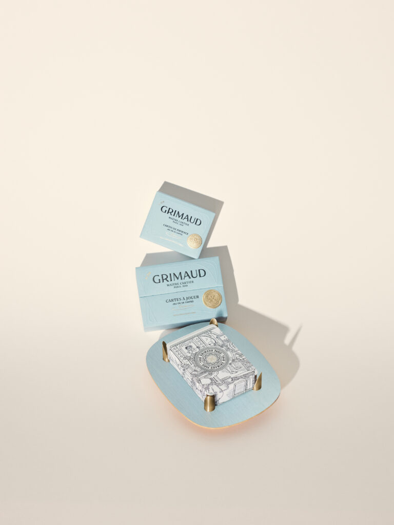 La nouvelle collection de Grimaud, lancée en juillet 2024, se distingue par un double jeu de cartes à jouer en édition limitée, conçu en hommage aux Jeux Olympiques de Paris 2024. Chaque jeu est pensé comme un objet de design et de culture, destiné à offrir une expérience de jeu luxueuse et raffinée.