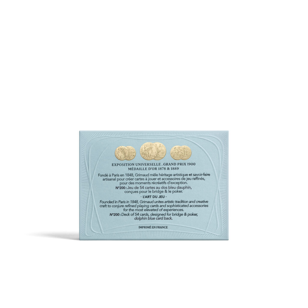 Le pari de Grimaud est de proposer le plus beau jeu de cartes possible, avec des illustrations et des finitions de qualité exceptionnelle. Aucun plastique n’est utilisé dans le processus de fabrication et d’emballage, les cartes étant produites dans les anciens locaux de l’Imprimerie Nationale Française et les packagings provenant d’un spécialiste situé dans le quartier de la Bastille. Chaque carte est imprimée sur du papier casino noir de qualité supérieure avec un vernis original pour une meilleure ergonomie et durabilité.